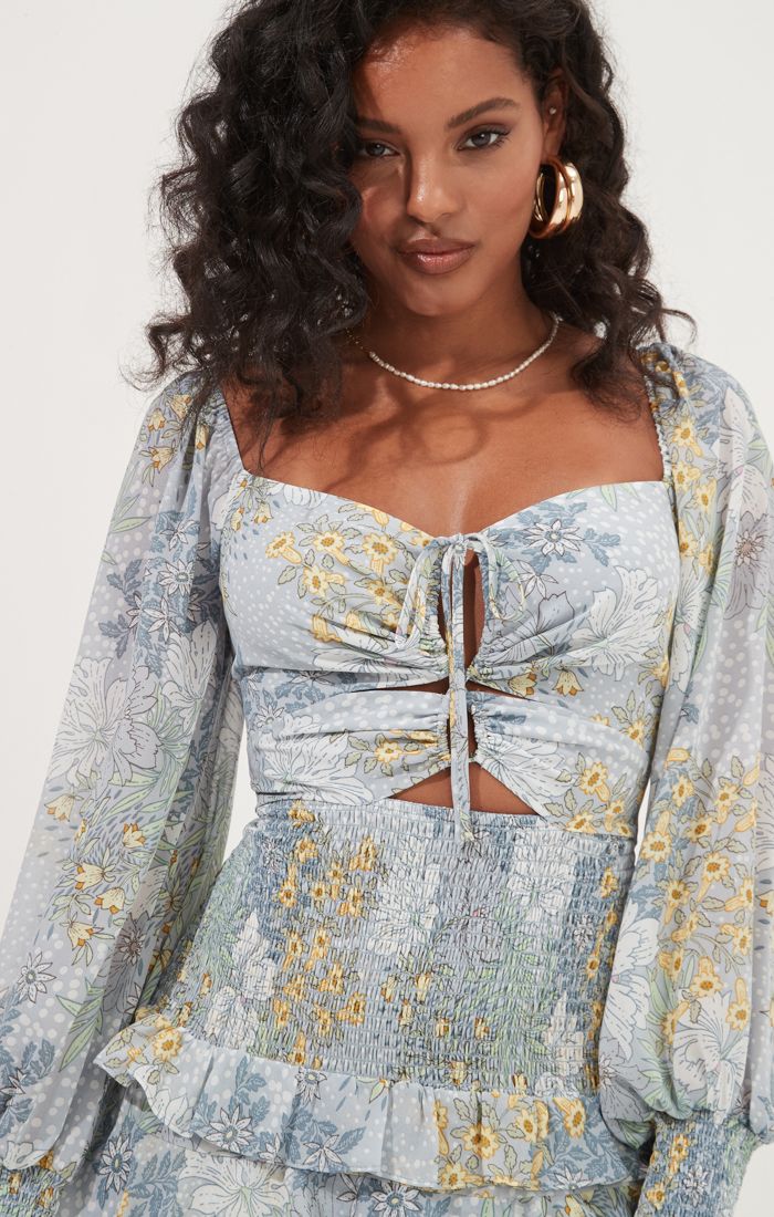 The stunning Marietta Dress features a sweetheart neckline that leads to a cinched bust and cutout accents. Smocked waist and tiered ruffle mini skirt. Smocked back. Long puff sleeves with smocked cuffs. Fully lined.