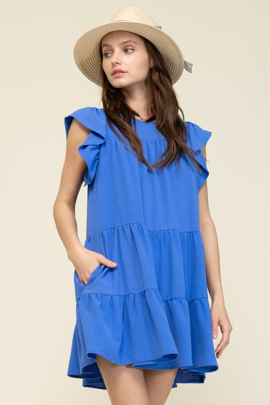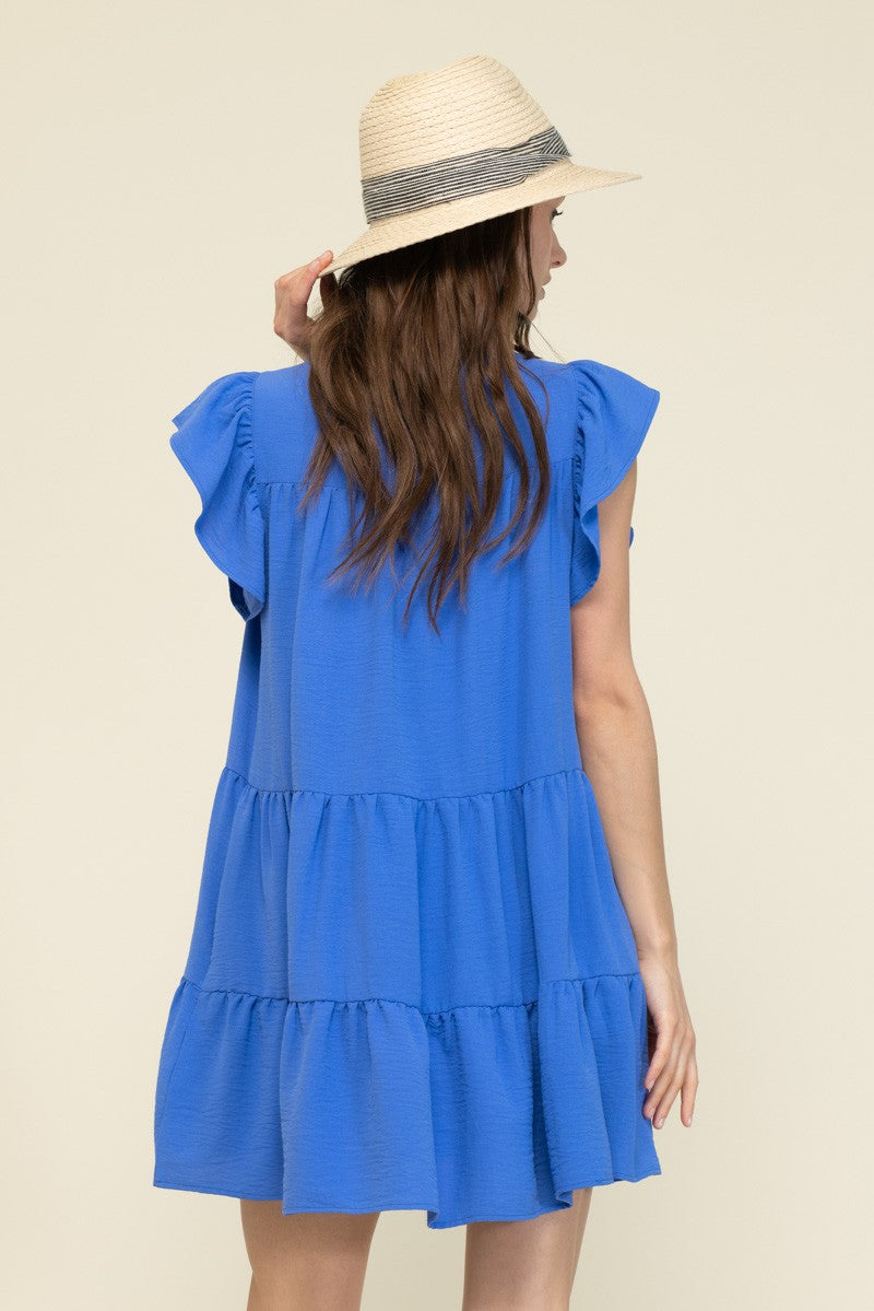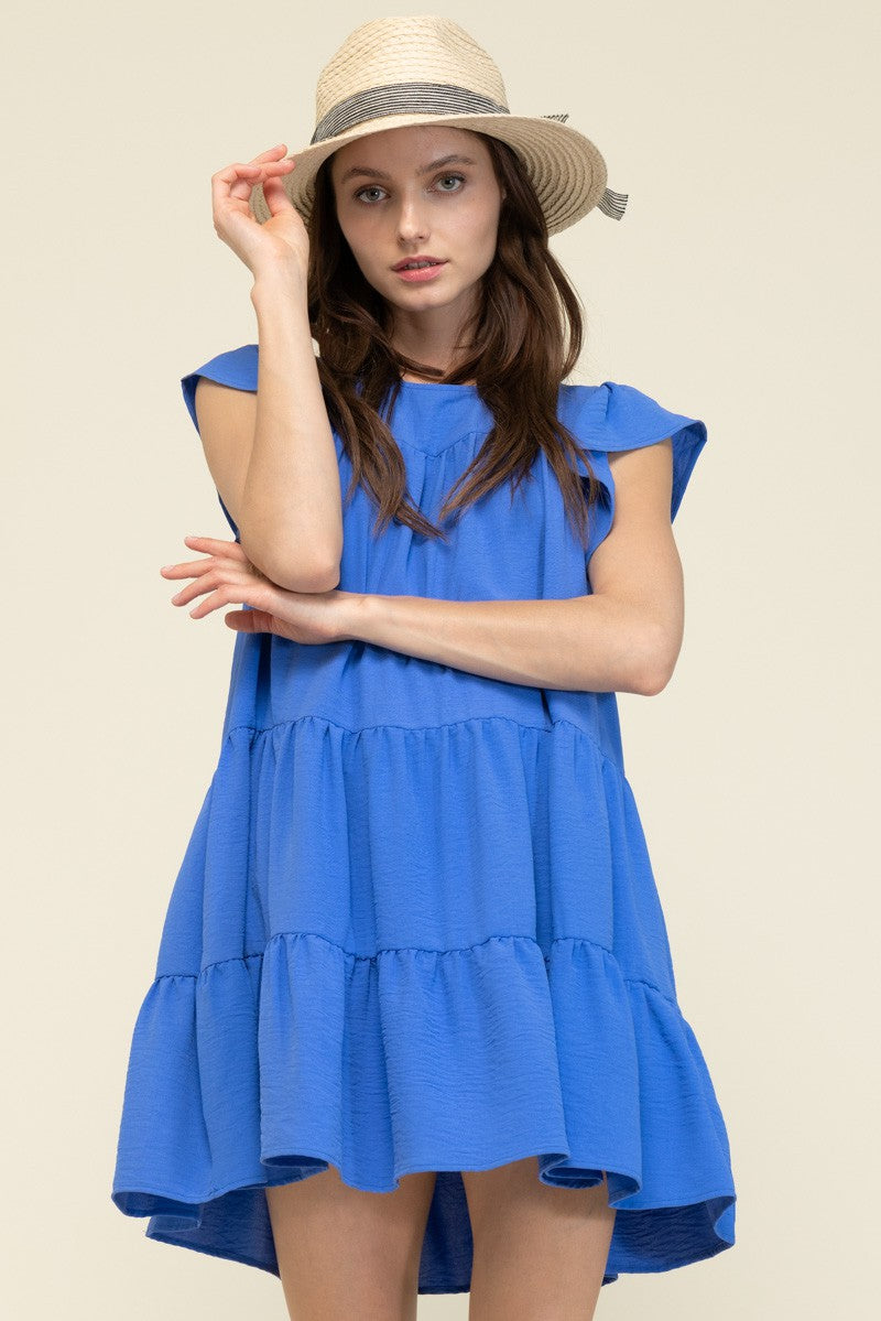 Blue S/S Pleated Dress