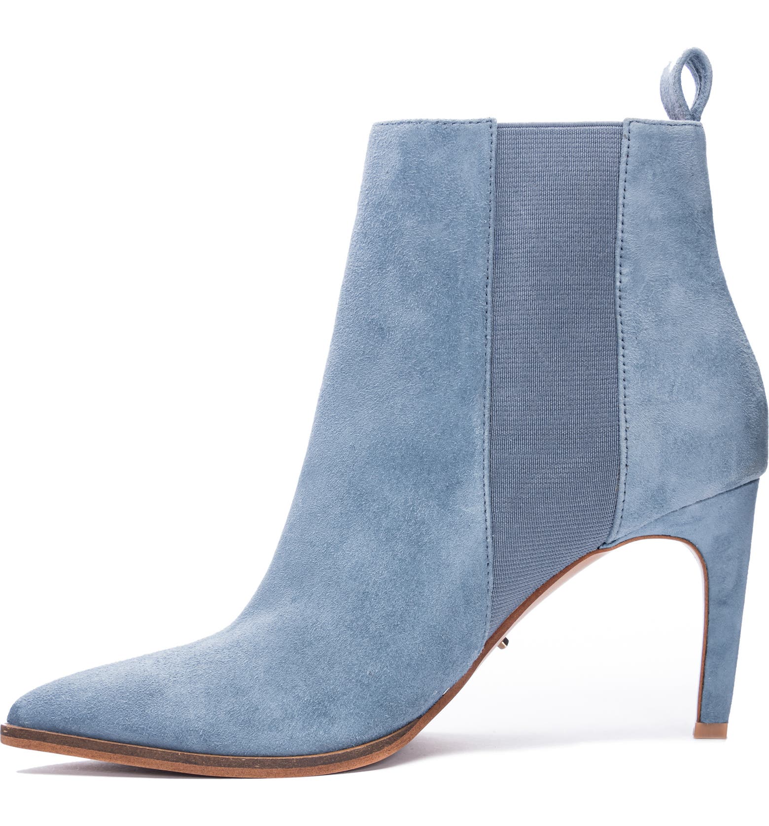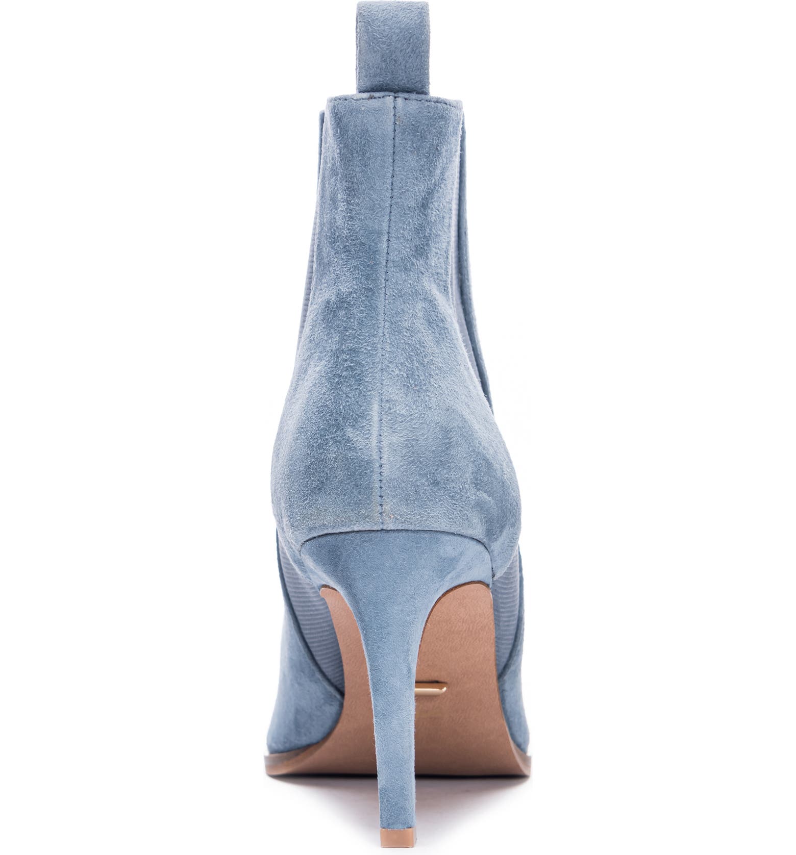 Crafted from suede, the Kensington bootie will add some edge to your closet. This pair features stretch side panels, a pull tab at topline and a sleek stiletto heel.
