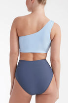 A one-shoulder, demure top offers coverage and sleek allure, while its ultra-feminine high-waisted bottoms flatter and fit like a glove.