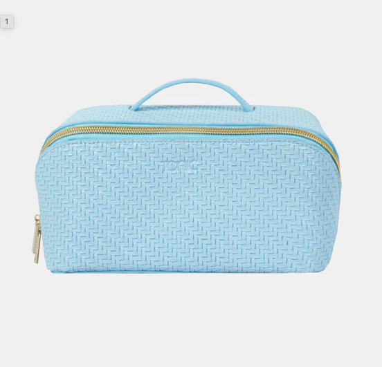 The carry handle lifts up for easy transportation while travelling, and gently pushes down to allow the possibility to stack multiple beauty bags on top of each other for stylish at-home storage.