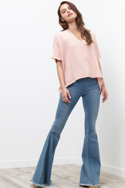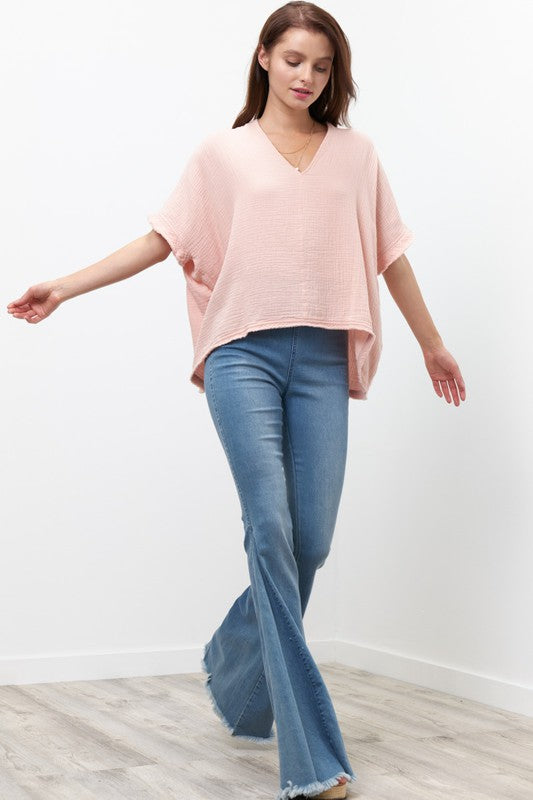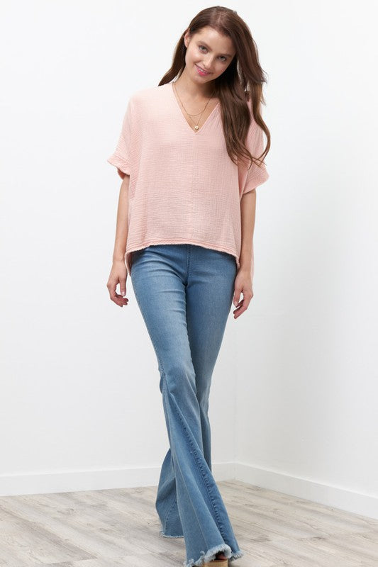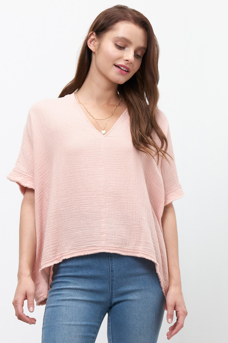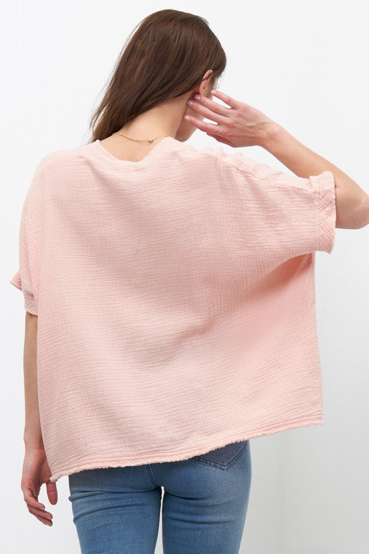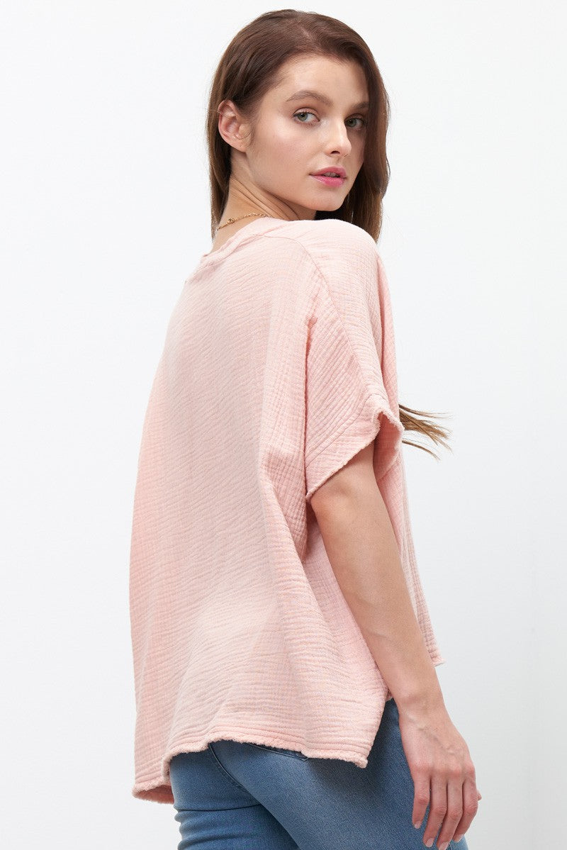 Blush S/S Gauze Raw Hem Top