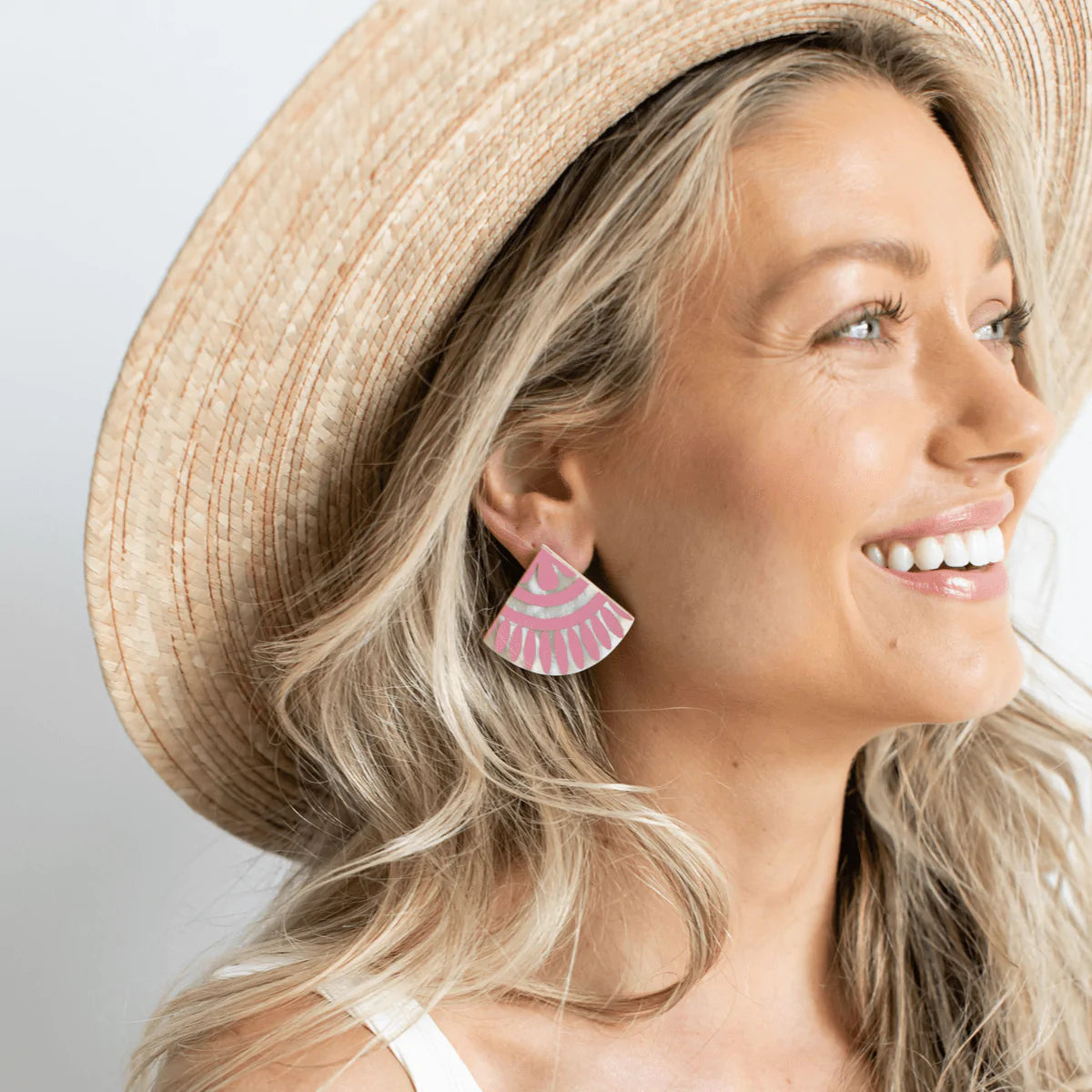 Inspired by the Talavera tiles in Mexico, our Blush Tile earrings are hand painted in a pink lacquer on natural buffalo horn to represent the Spanish history and craftsmanship of the luxurious haciendas. These lovely stud earrings will become your new favorite summer accessory.