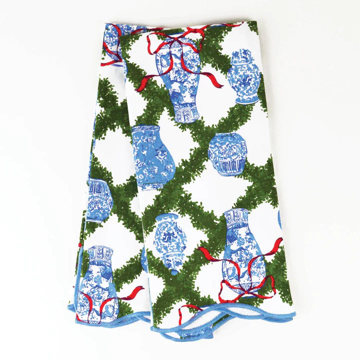 Boxwood Ginger Jar Scalloped Kitchen Towel Set