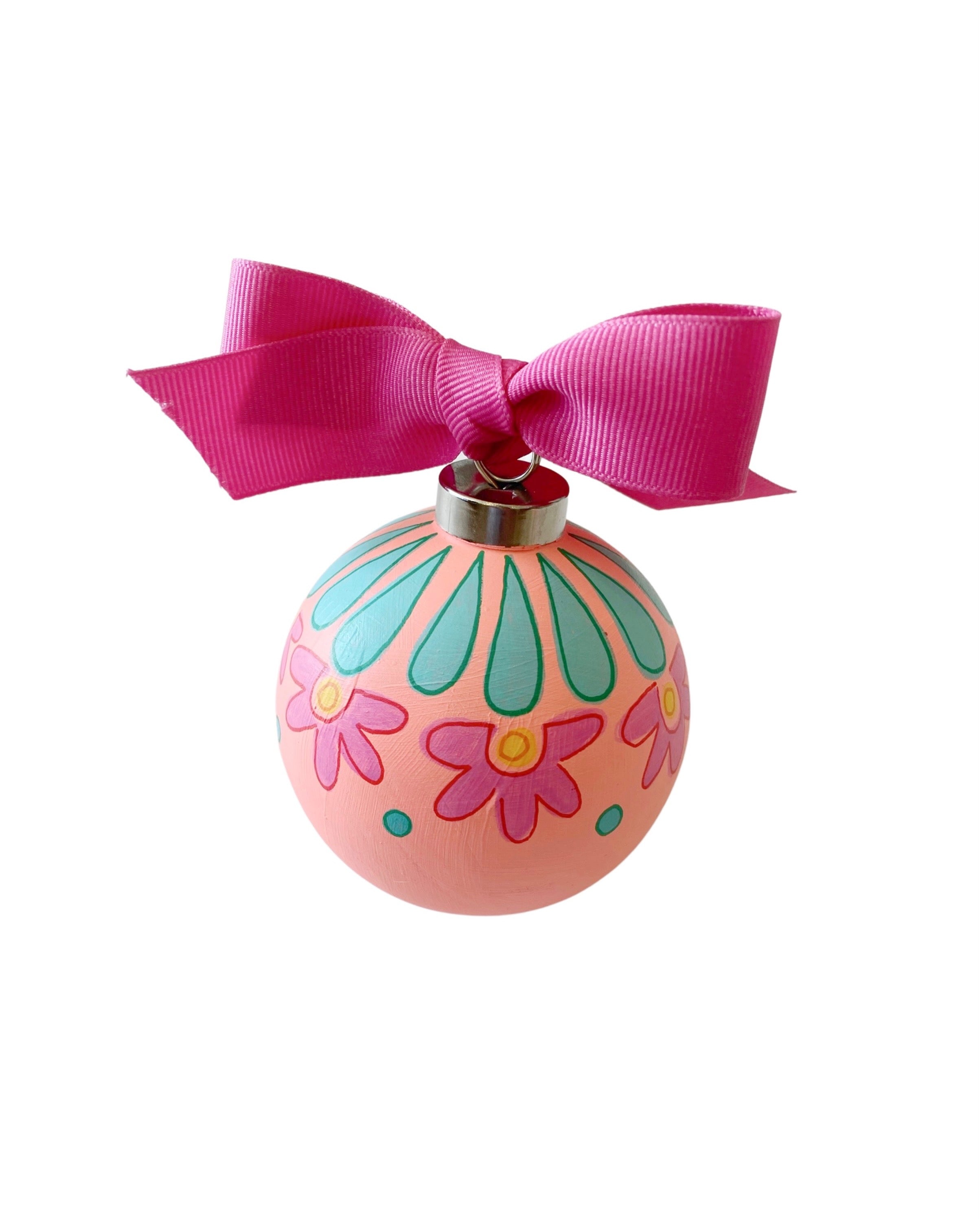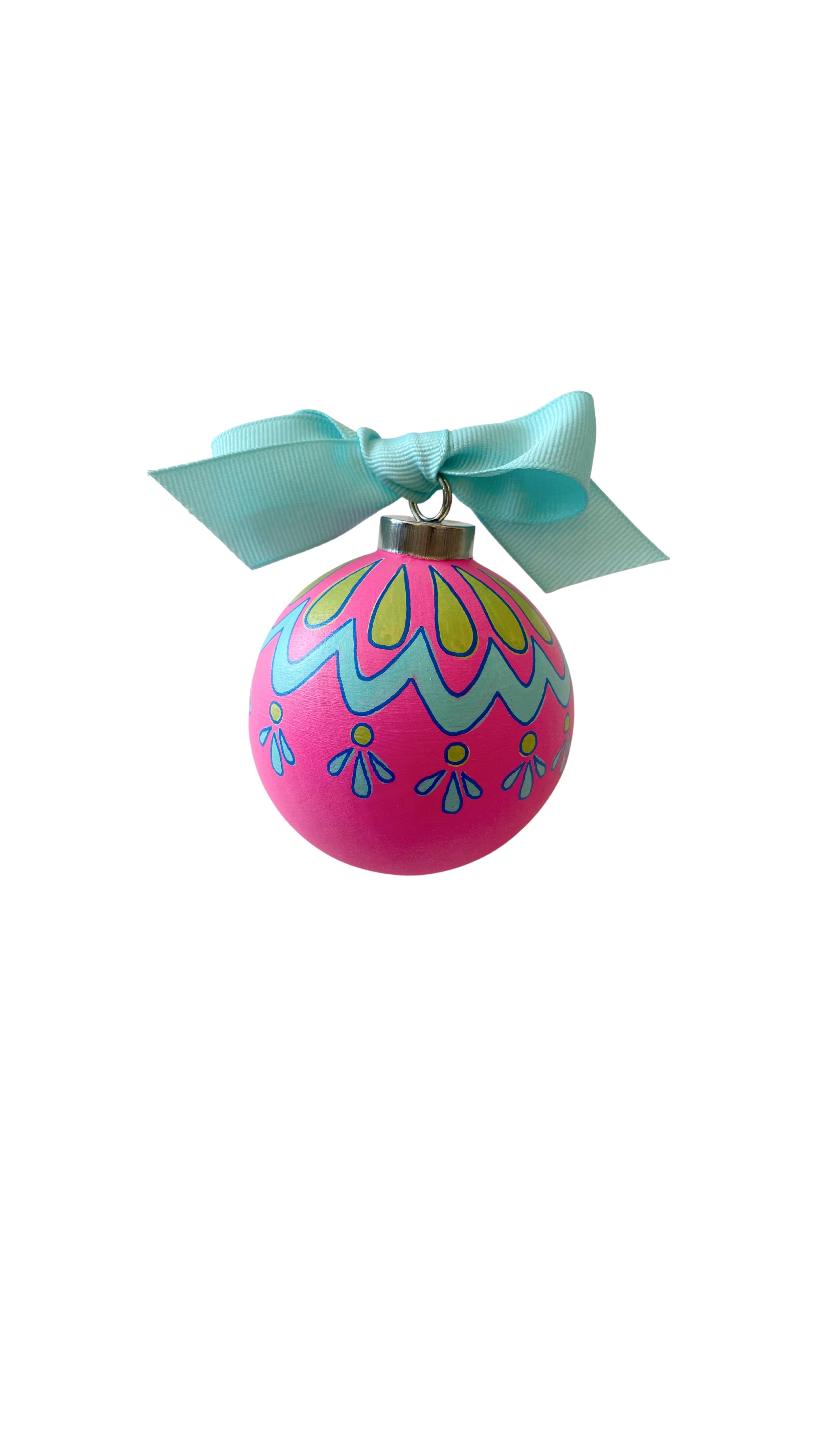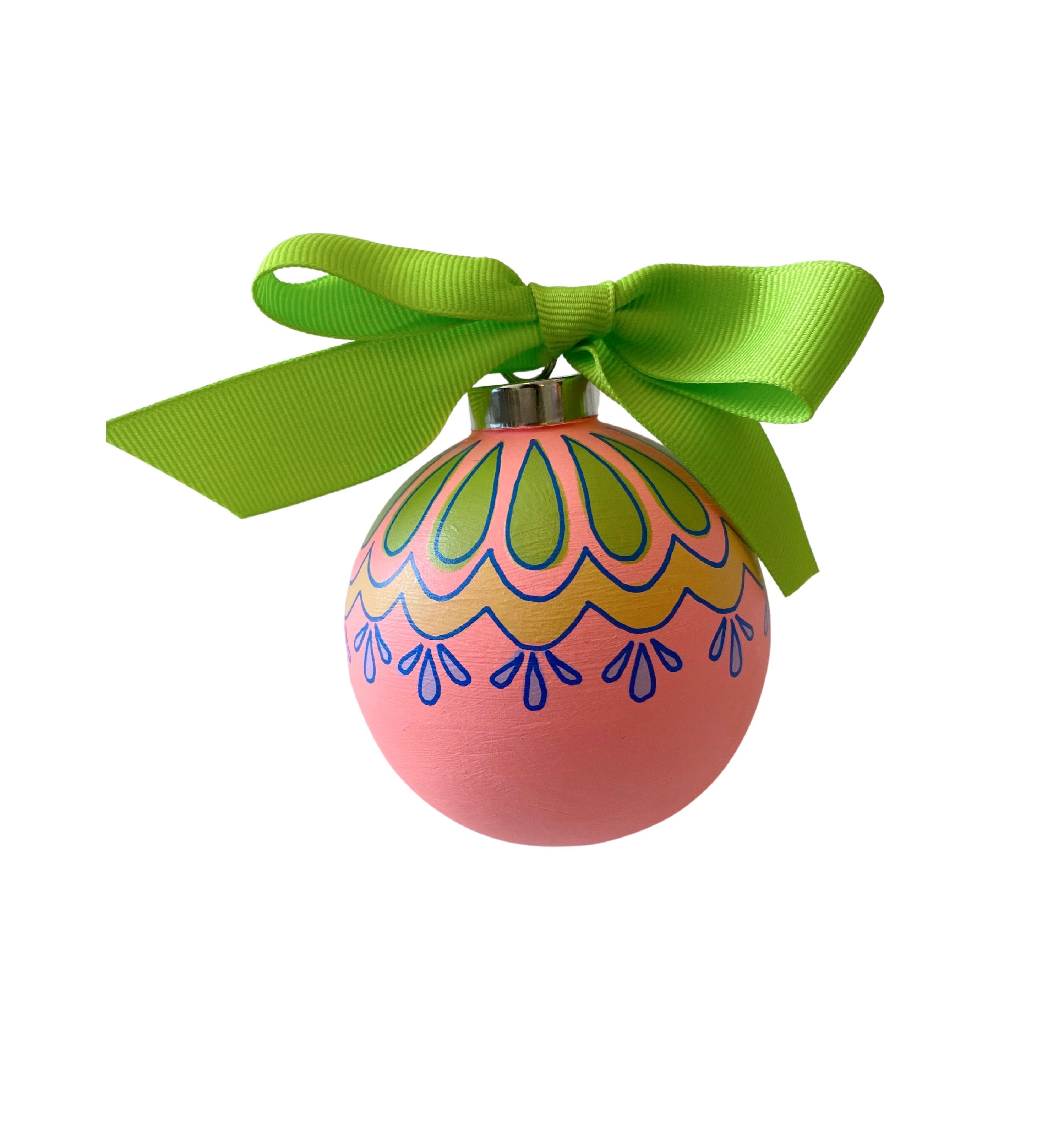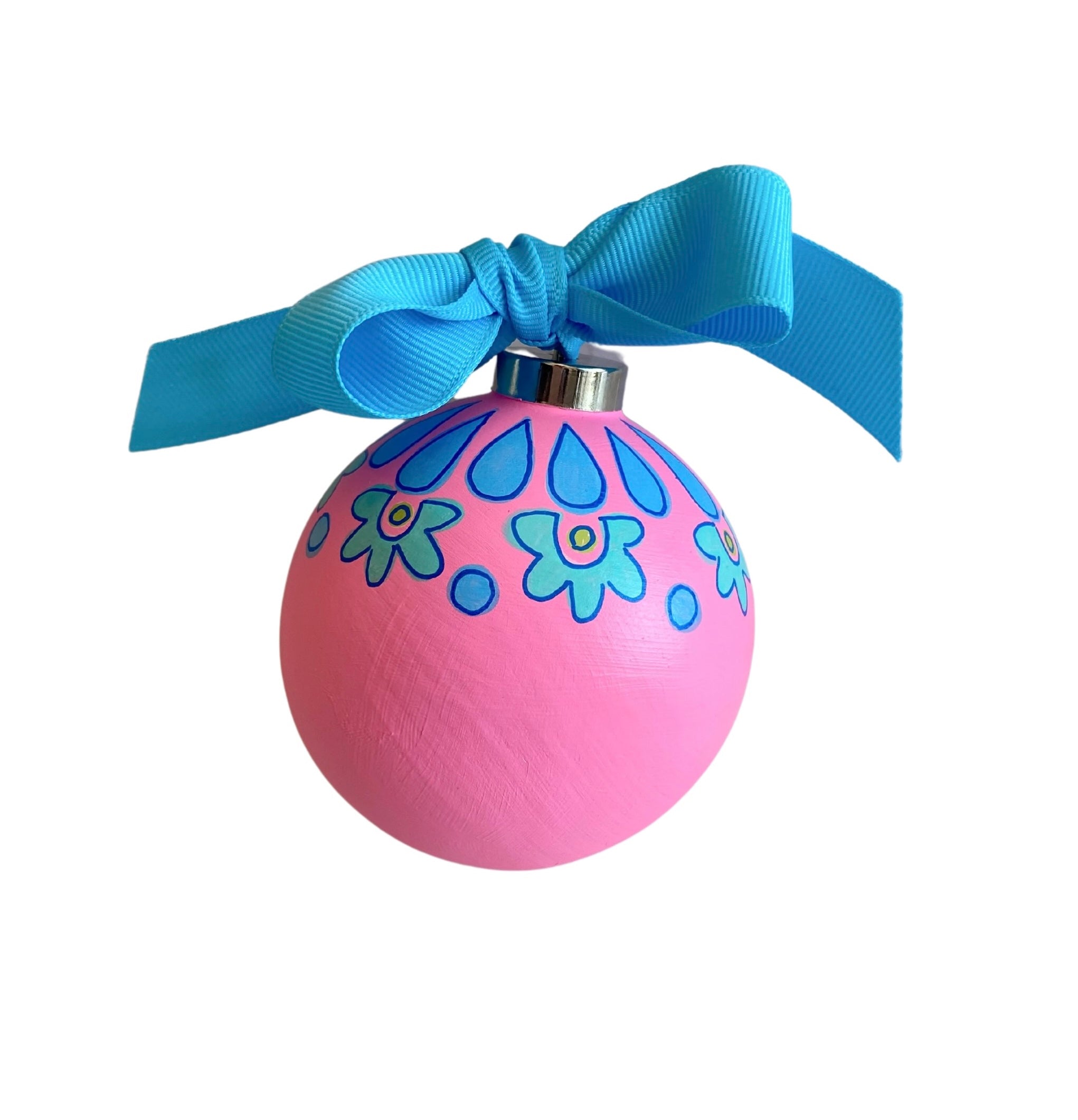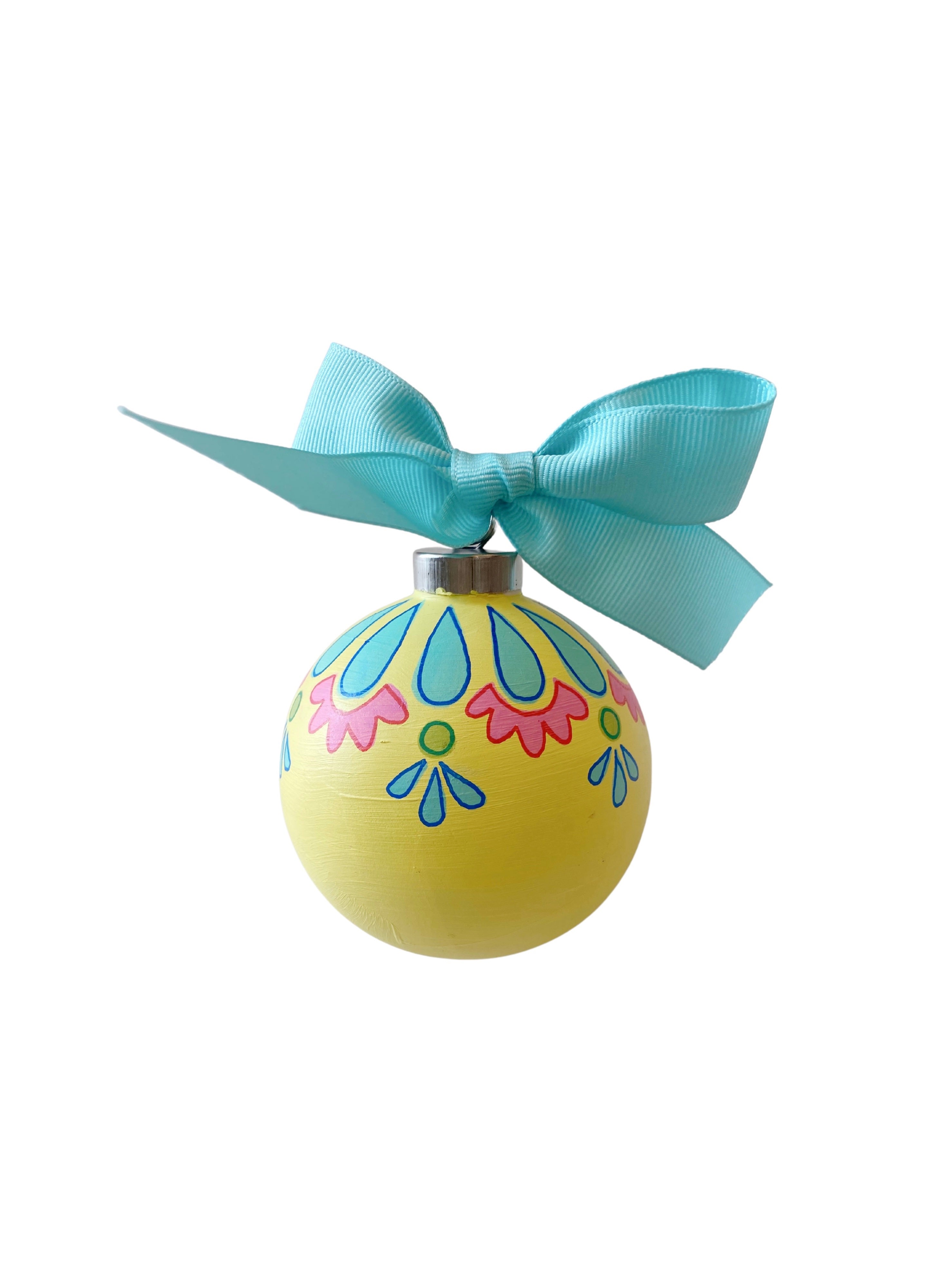 Bisque fired, acrylic hand-painted 3" diameter ceramic ornament