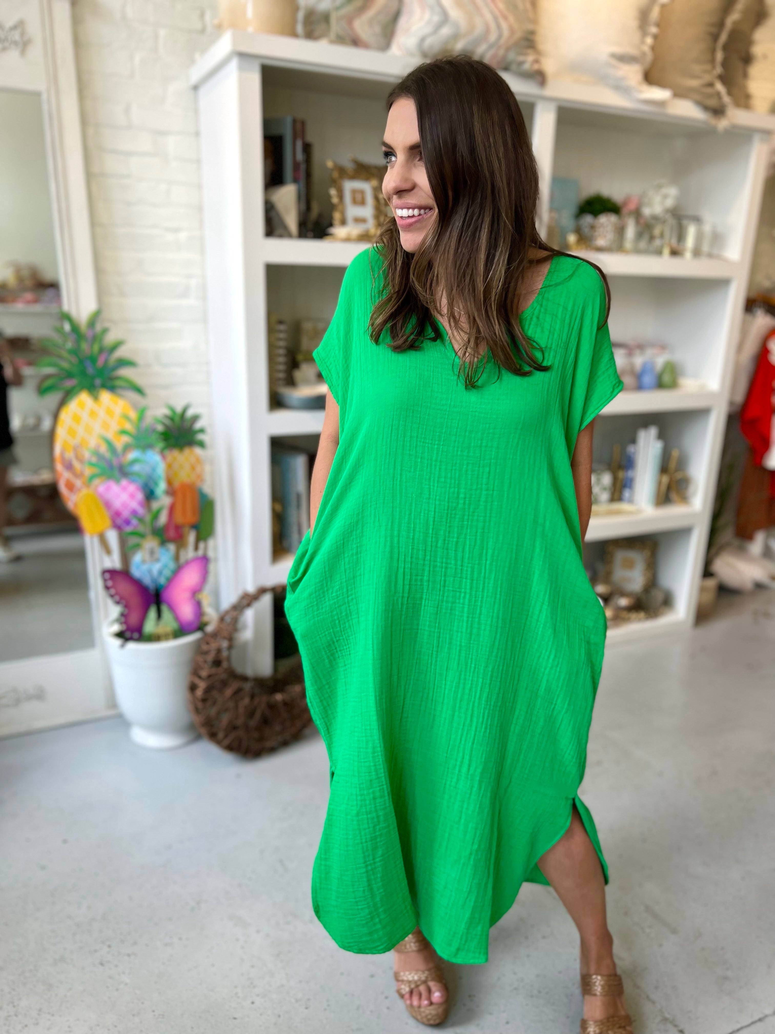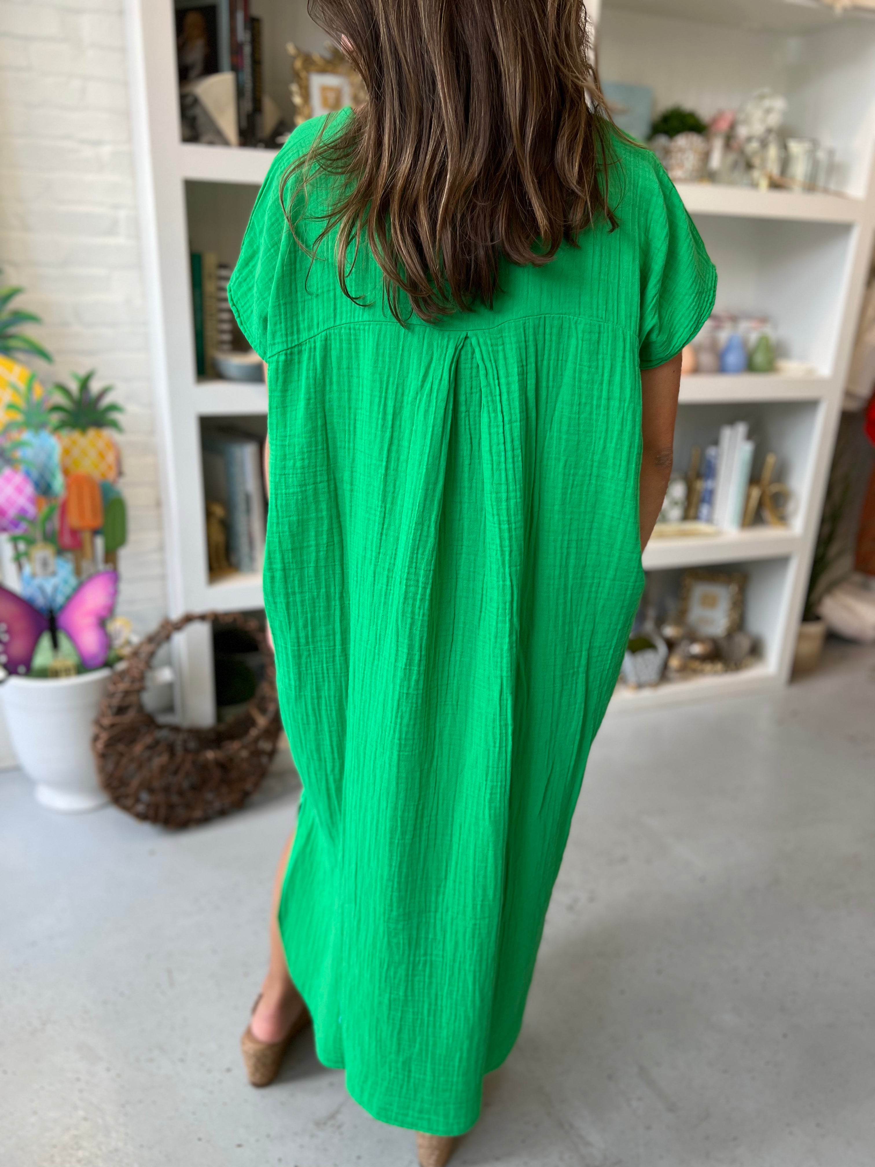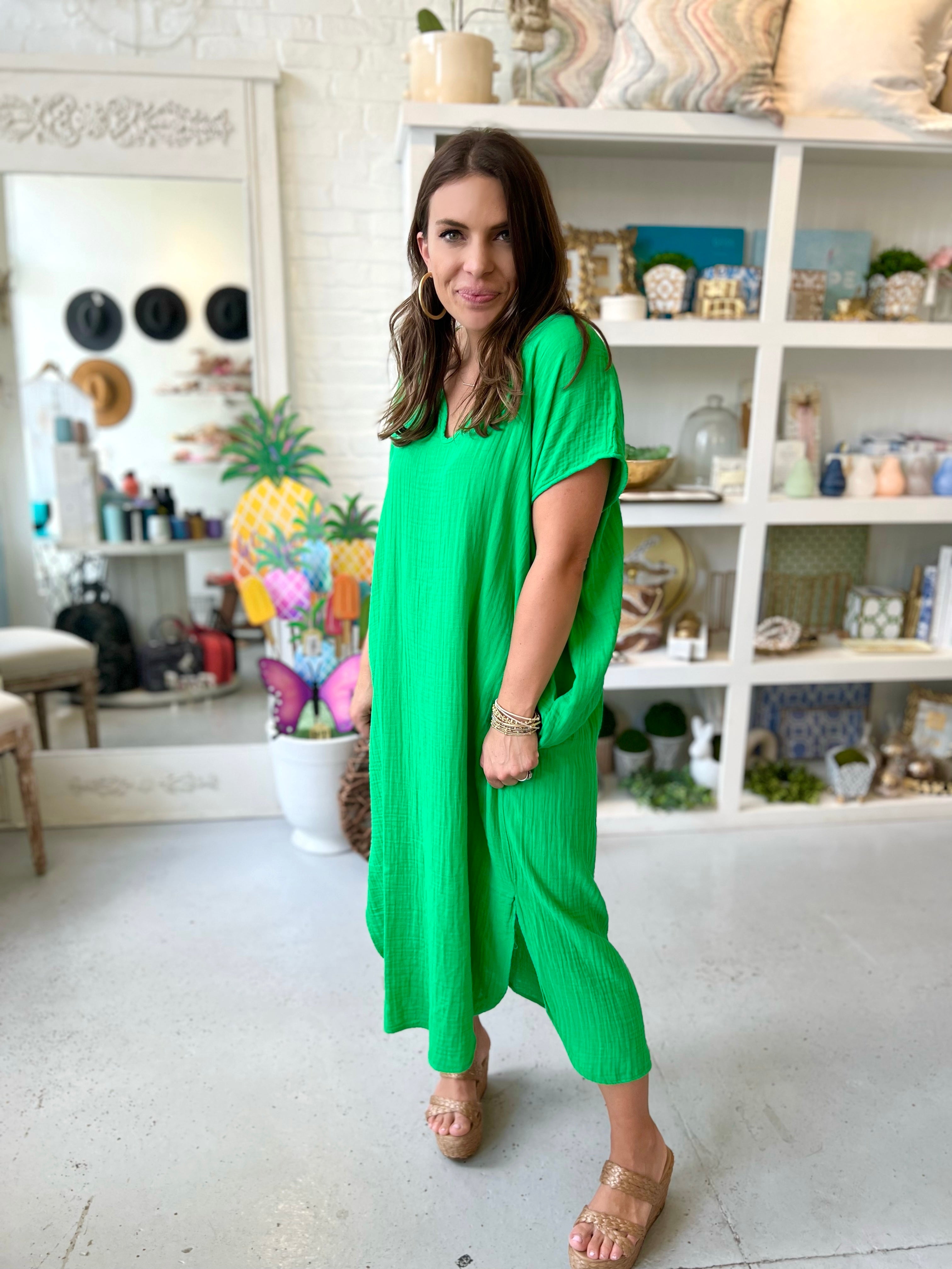 Bright Green Solid S/S Caftan