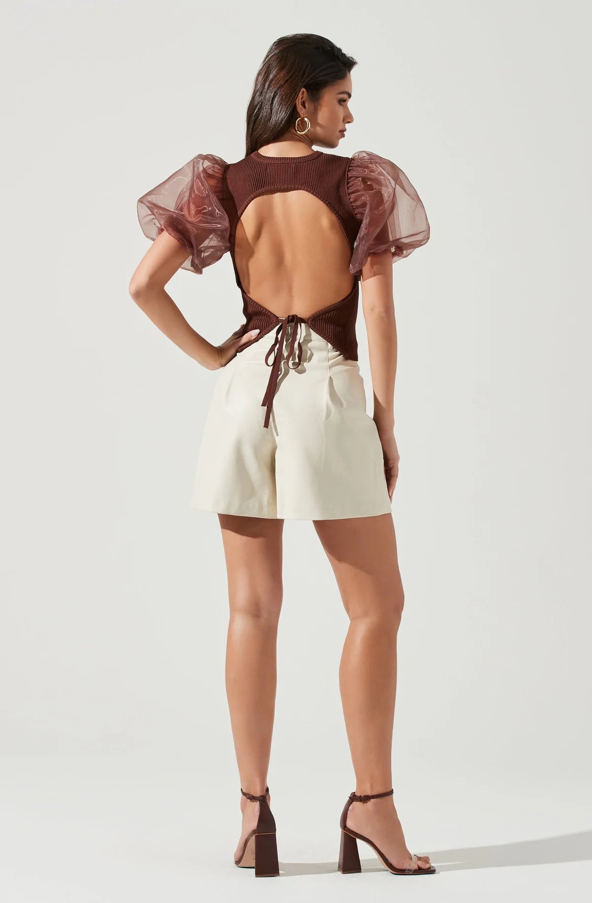 Brown Puff Slv Backless Avery Top