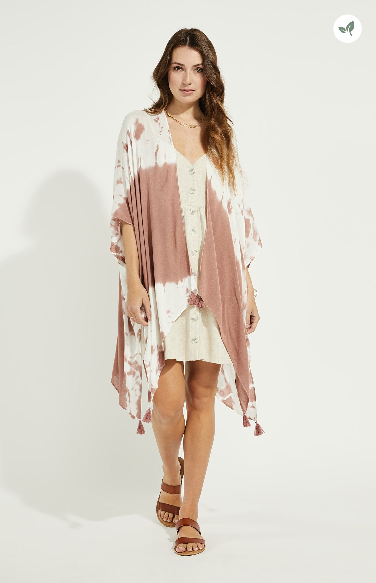 The Heron cover-up is made of EcoVero viscose. Every piece is tie-dyed for a one-of-a-kind look. Wear it as a beach cover-up or as a lightweight layering piece all season long.