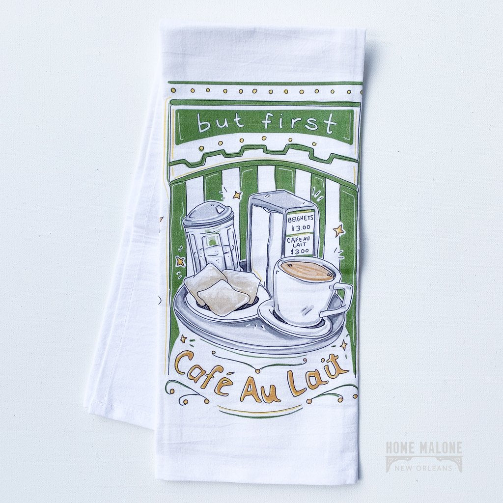 But first... Café Au Lait! This illustrated towel is perfect for anyone who loves beignets and café au lait.