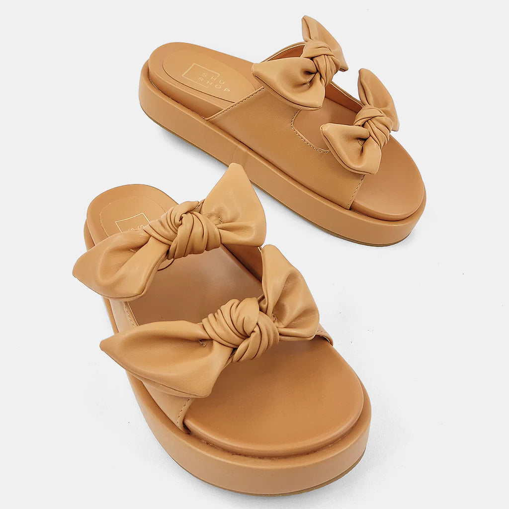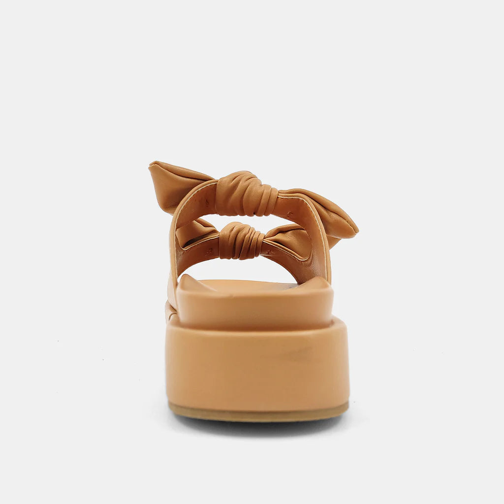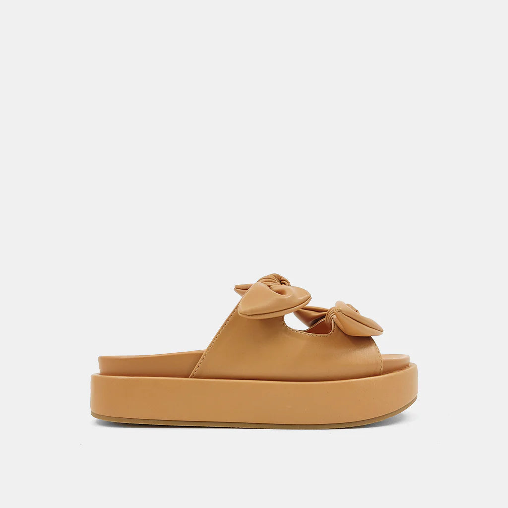 Crowned with two dainty bows, our KIKI flatform sandals are made from soft faux leather. This pair rests on a wedge platform you can wear comfortably (and with style!) through the day.