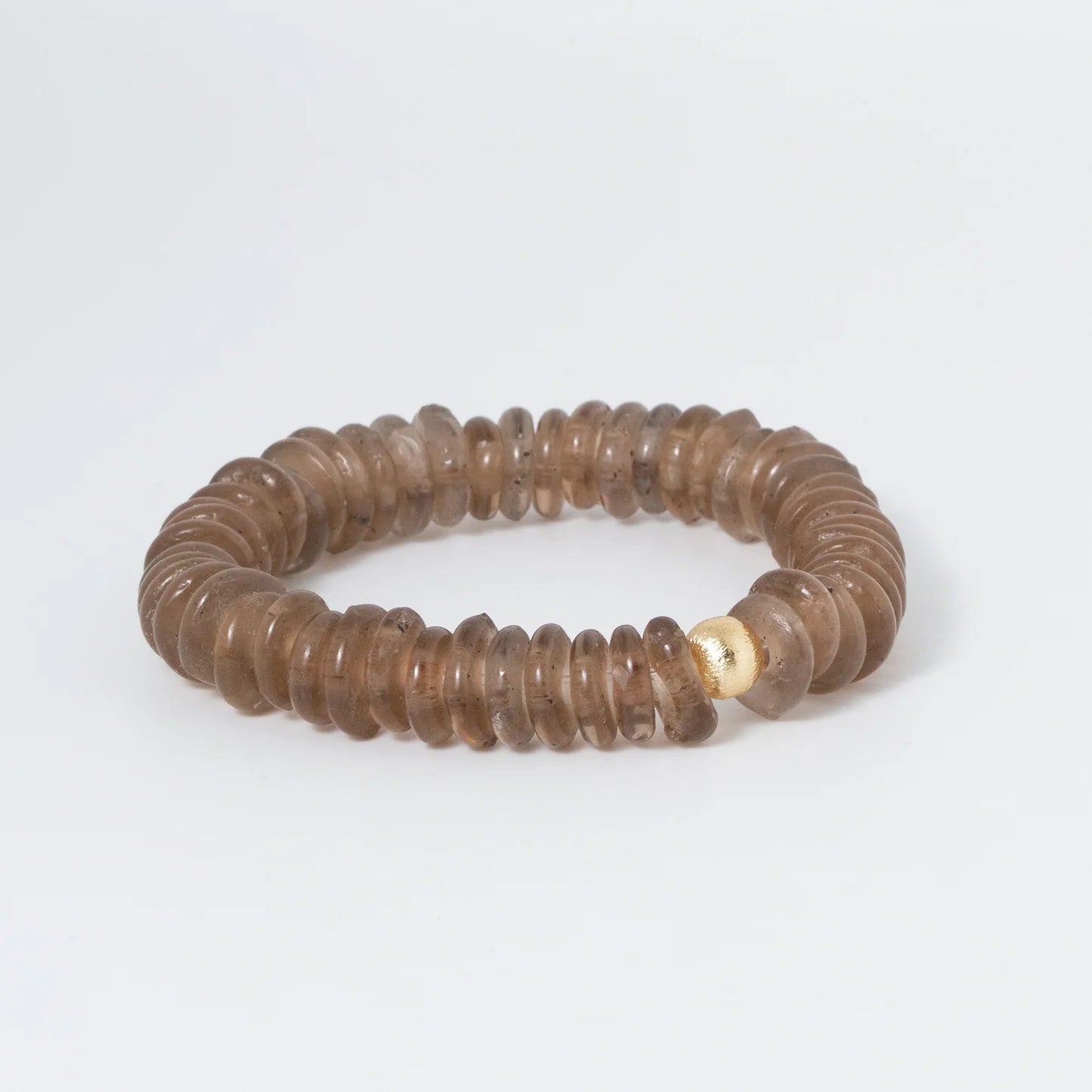 Beautiful brown recycled glass beads globally sourced from Africa and hand-rolled by village woman. The imperfectly, perfect look of these stunning beads will manifest adventure and beauty into your life! Pair with any of the bracelets from Cappuccino Seascape Collection, including the Capri Sunset or Gold Horn Bracelet to create a stunning stack!