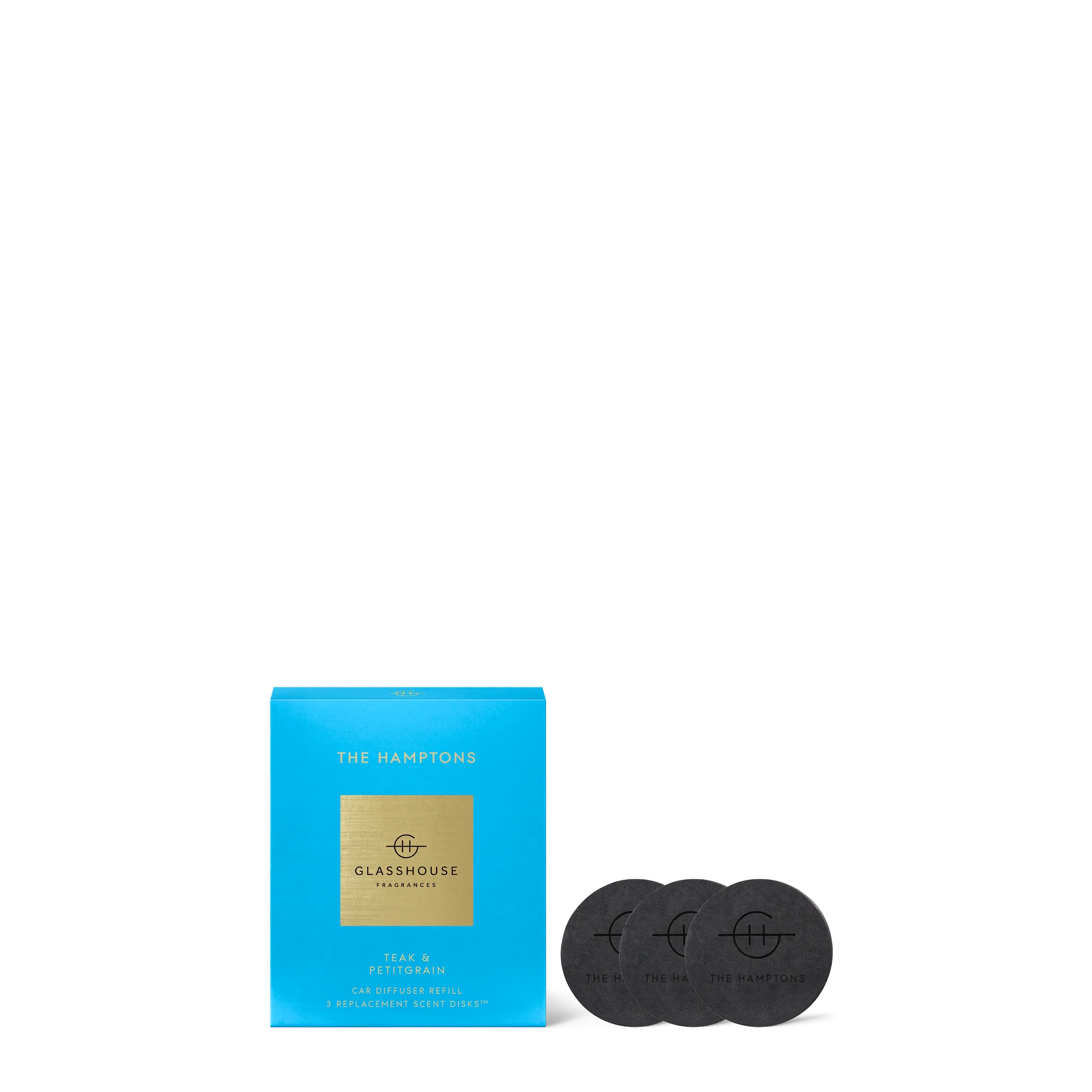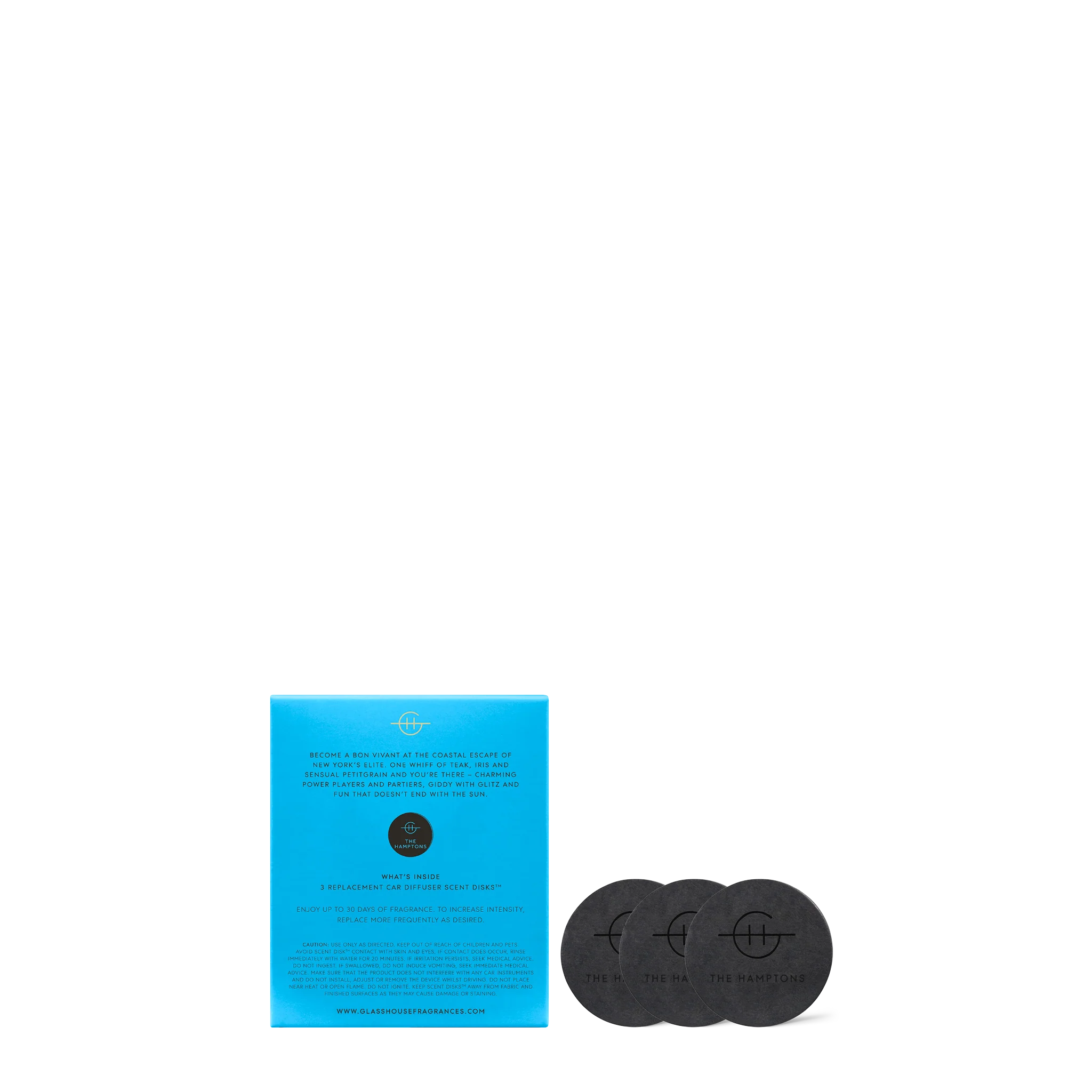 A three-piece Scent Disk™ refill to refresh and strengthen the potency of your Car Diffuser. Inspired by a coastal escape, it blends sunshine, soft cashmere, and a hint of expensive gin.