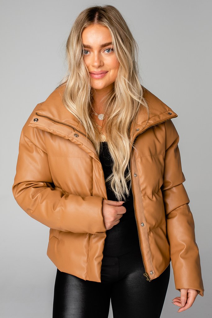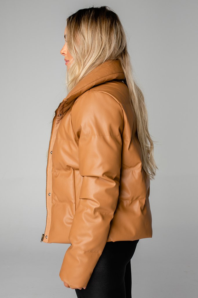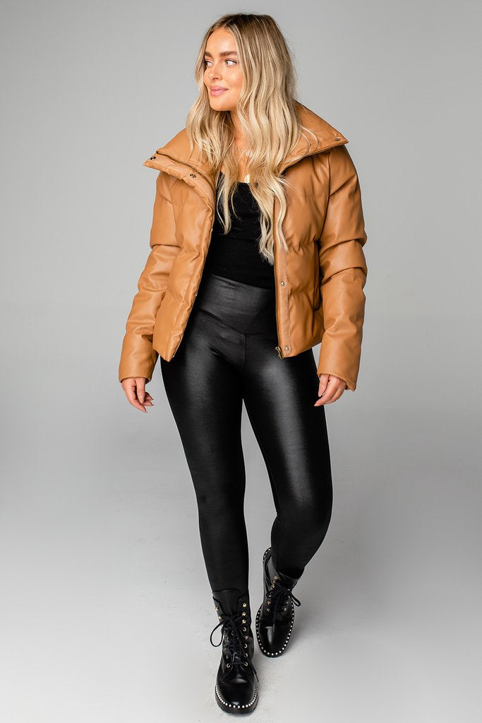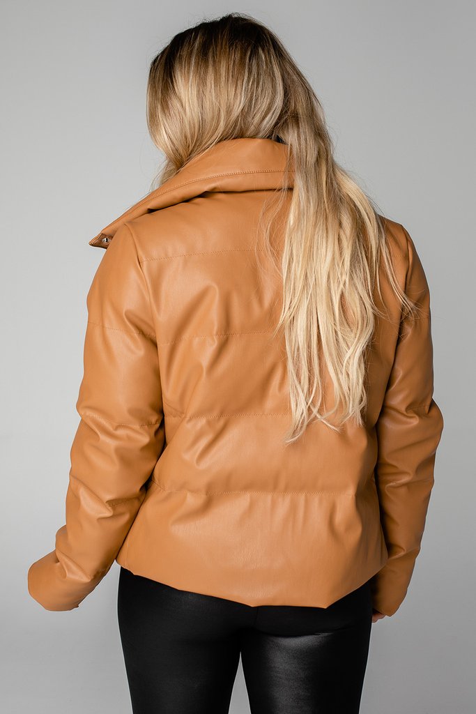 Puffer Jackets don't get more stylish than this! Our Addison Jacket features a zip up and snap closure, vegan leather, and two side pockets! Pair her with skinnies, bodysuit and booties to complete your date night look!