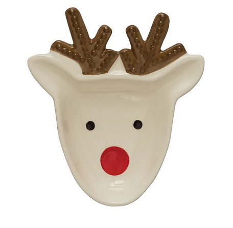 7-1/2"L x 6-1/2"W Ceramic Reindeer Plate, White, Brown and Red