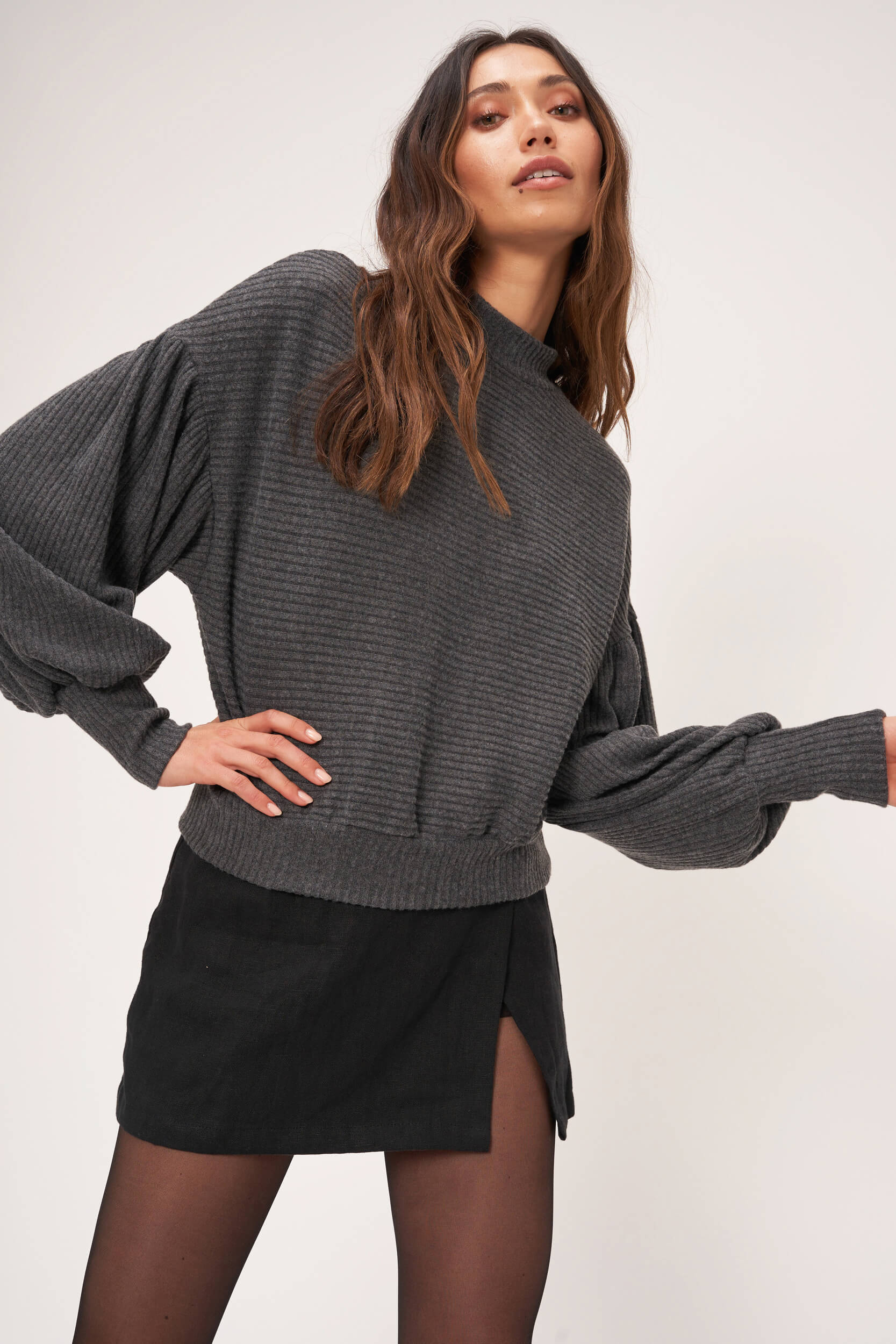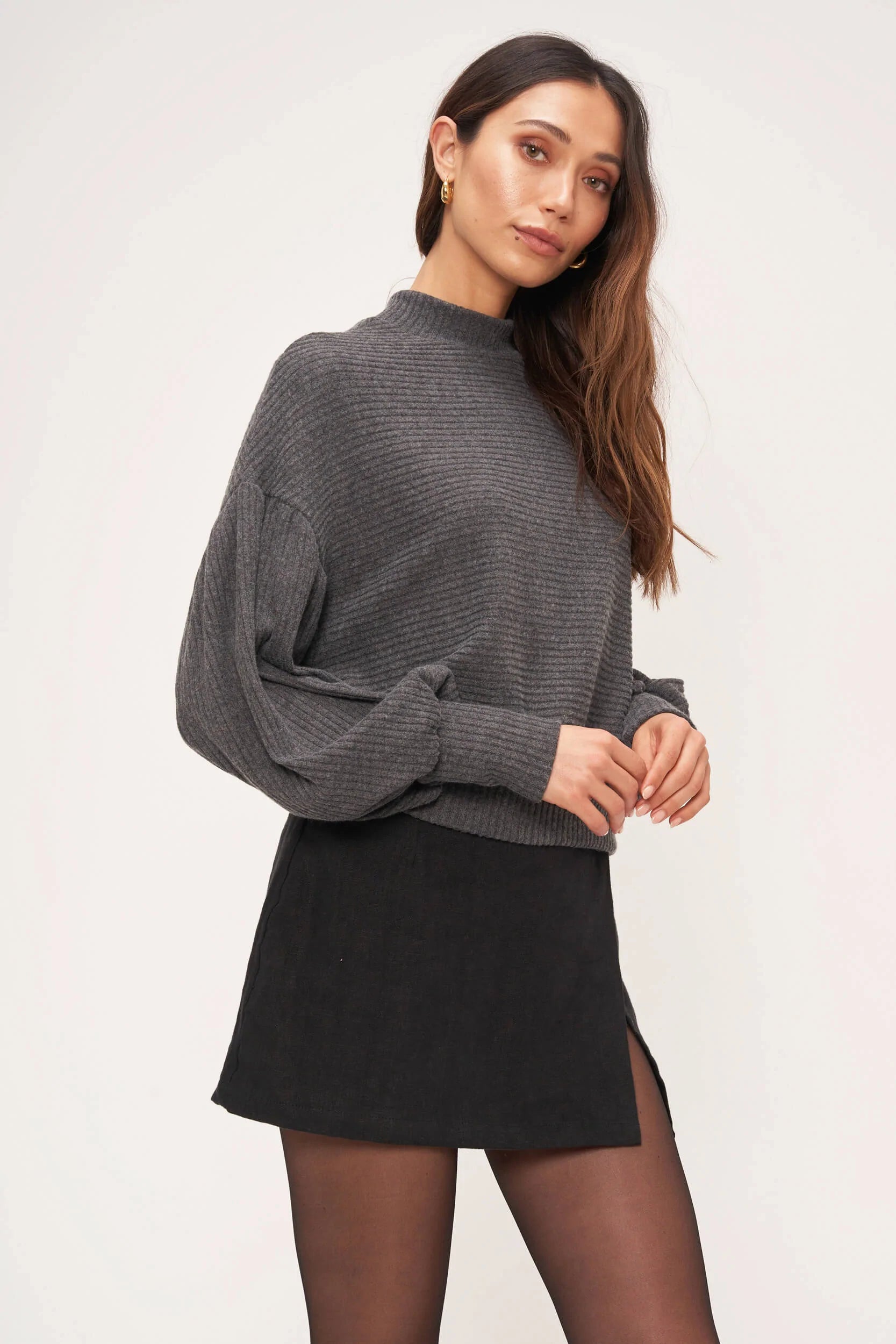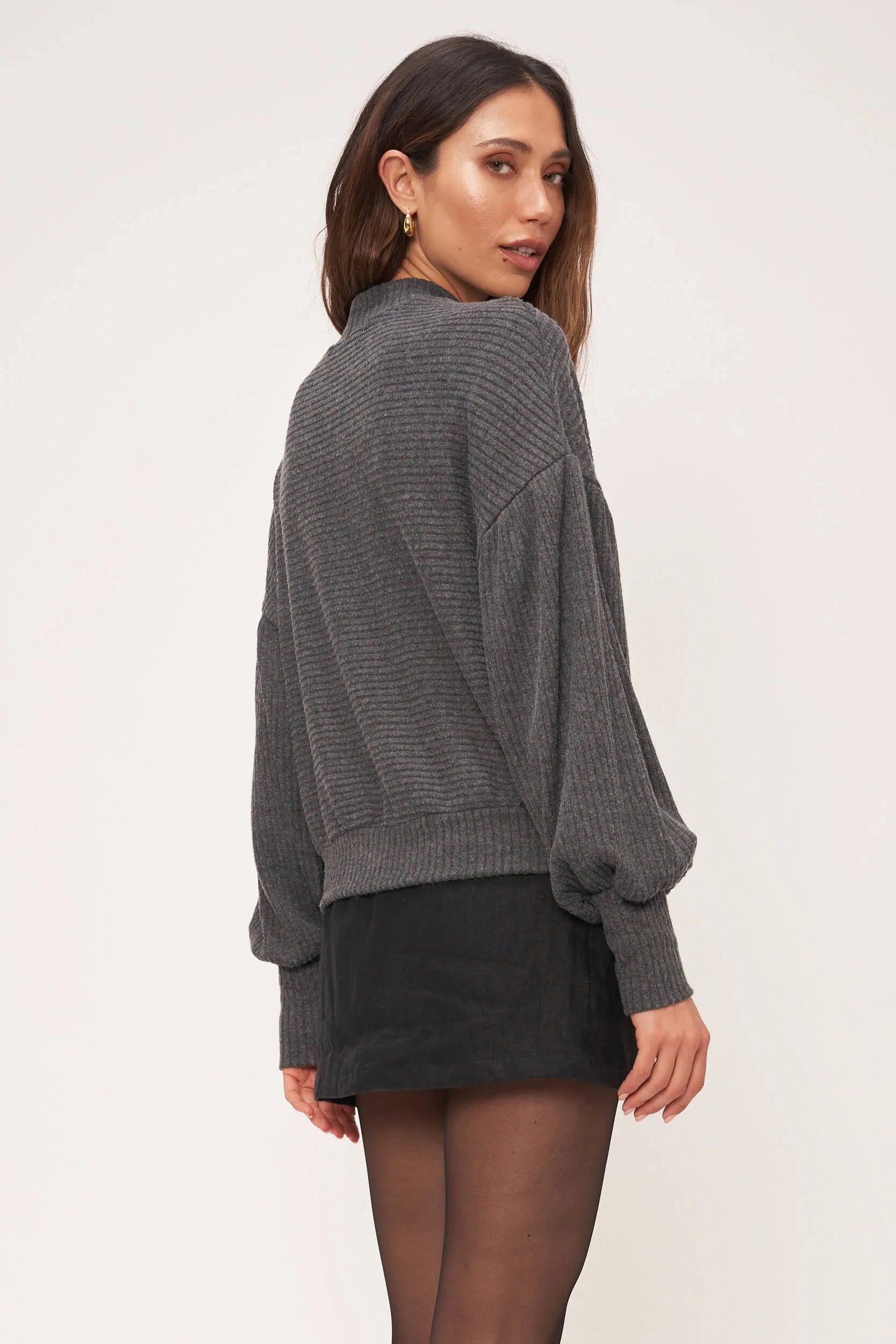 Charcoal Brushed Rib Mockneck Daydream Sweater