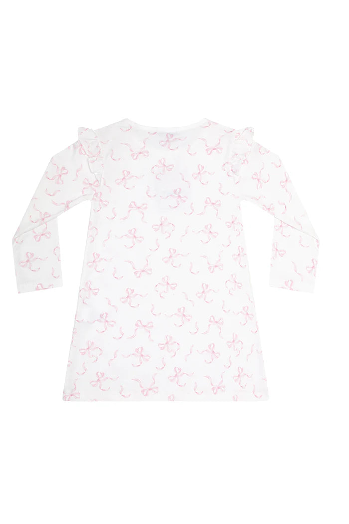A playful yet refined piece, this dress is perfect for daytime outings, family gatherings, or casual playdates. Made from ultra-soft Pima cotton, it features fluttery sleeves, a comfortable fit, and our signature pink bow print. Style it with a matching hat or blanket for a complete look.
