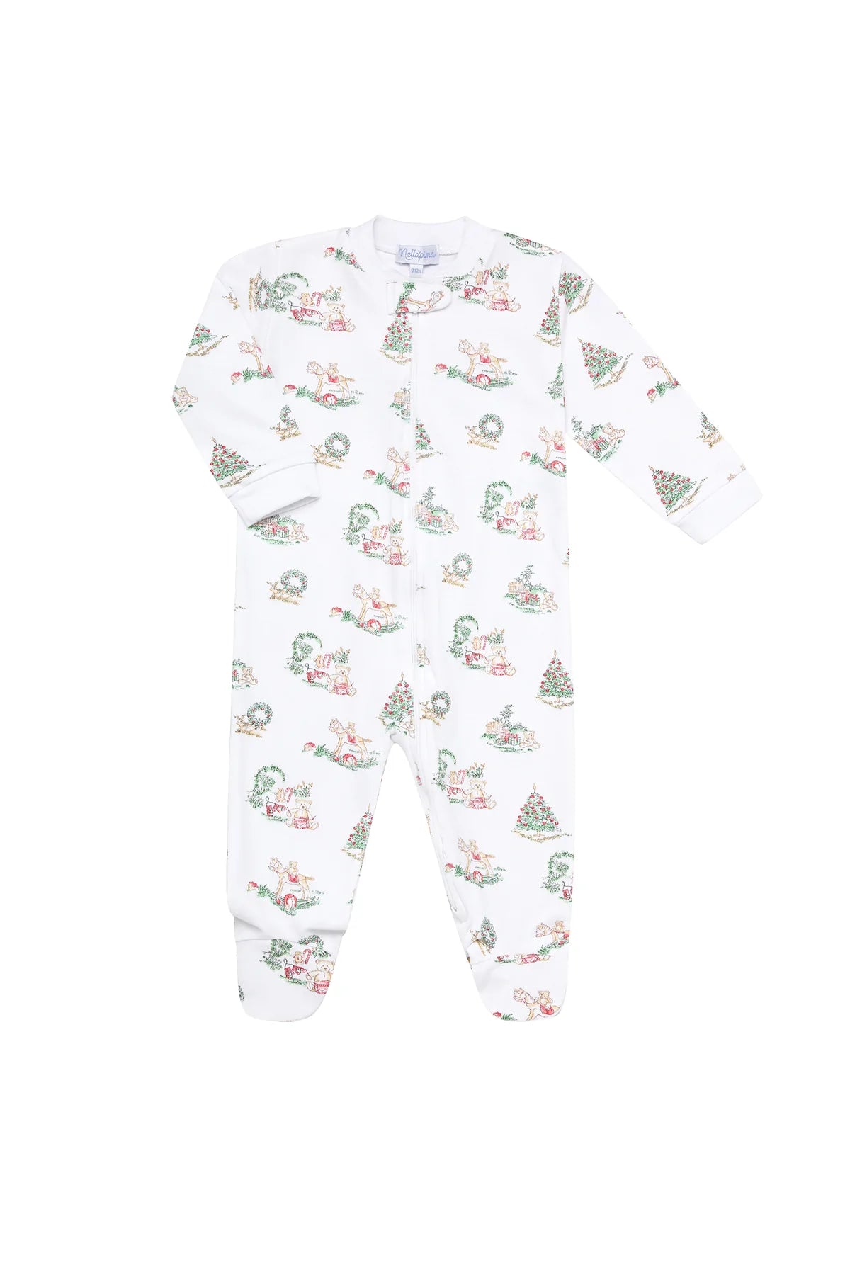 Gentle on baby’s skin and easy to care for, this Christmas toile zipper footie is the ideal choice for your little one. Made with 100 % Peruvian Pima cotton fiber, this footie is extremely soft and lightweight, which feels great on your baby’s skin. This cute footie has beautiful Christmas elements in classic season colors. Moreover, features like anti-lint and highly breathable, make this zipper footie perfect for everyday wear. For size guidance, see the size chart below product images and select the suitable size for your baby.