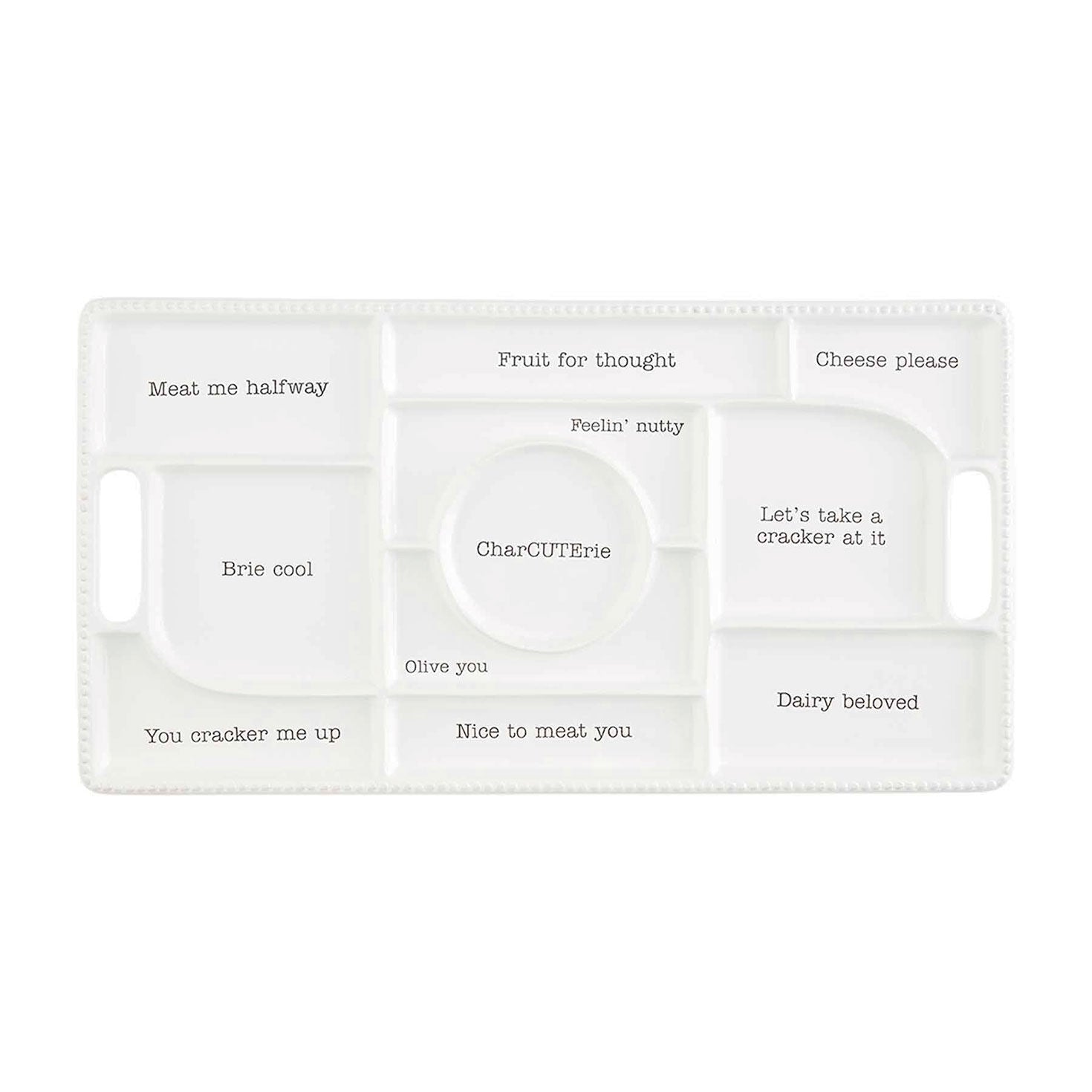 - Ceramic charcuterie tray with side handles includes 11 different sections for meats, cheeses, nuts and more.