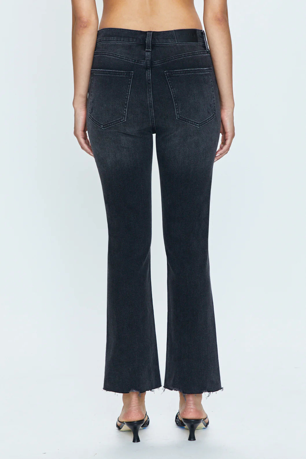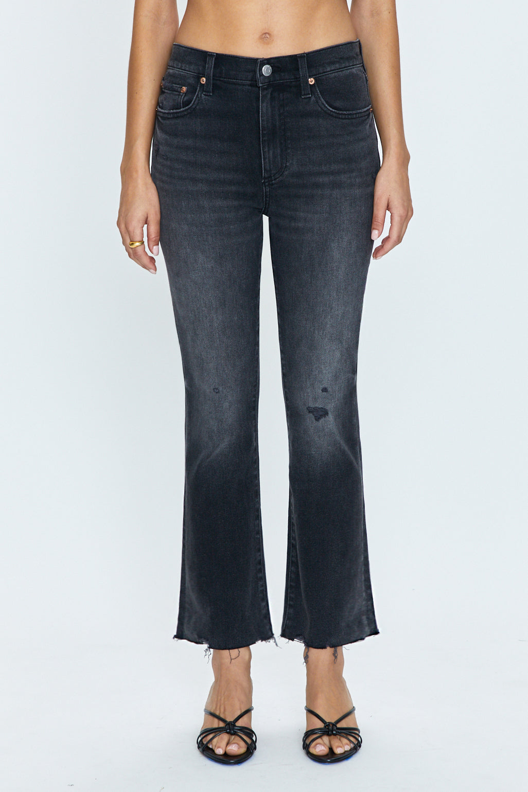 Our best selling bootcut silhouette with a high rise waist and cropped ankle hem, crafted from our best selling comfort-stretch denim. Citadel Vintage is a washed black denim with fading, whiskering, vintage distressing, and finished with a raw edge hem.