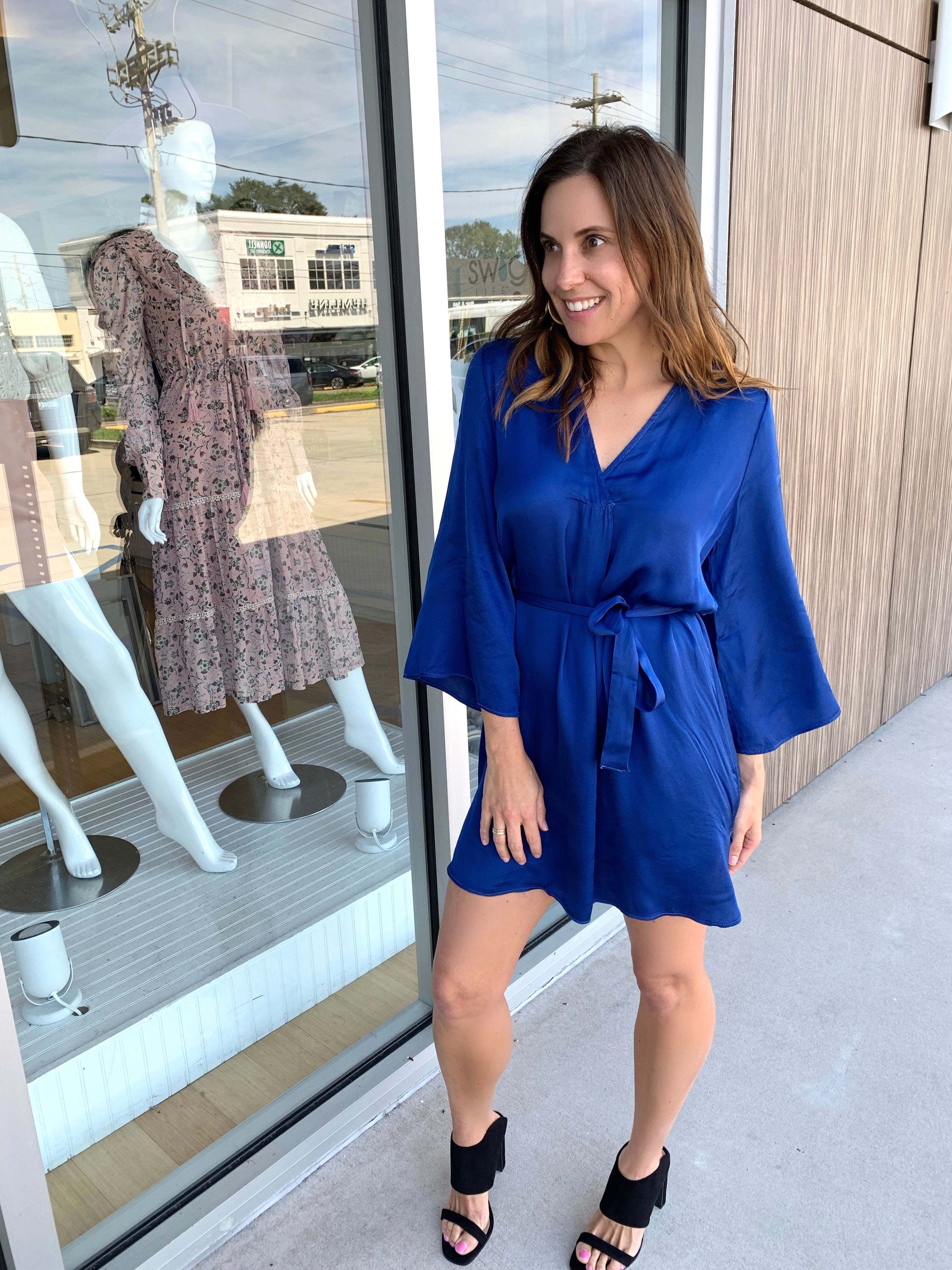 Classic Blue Silky Belted Dress