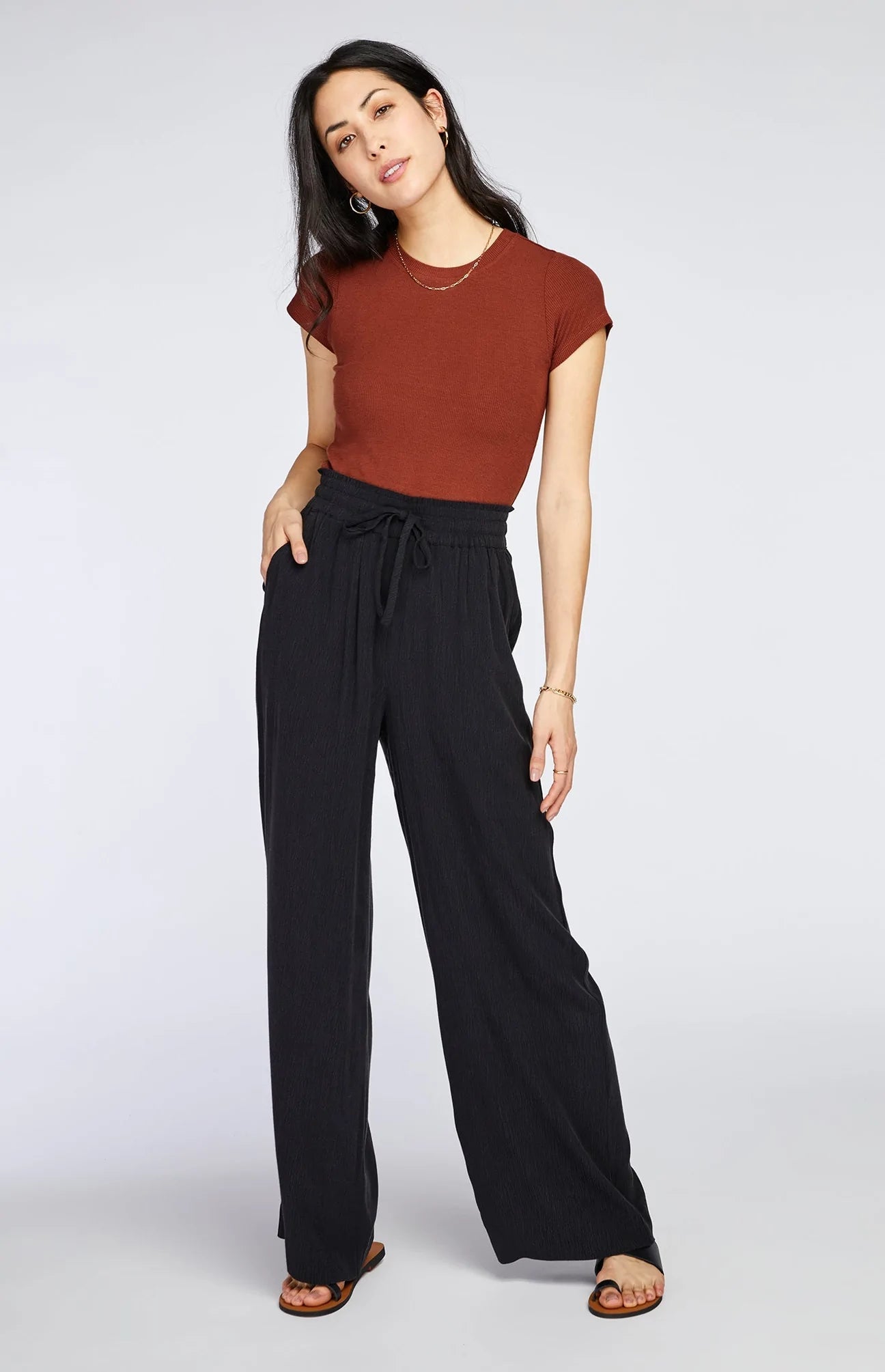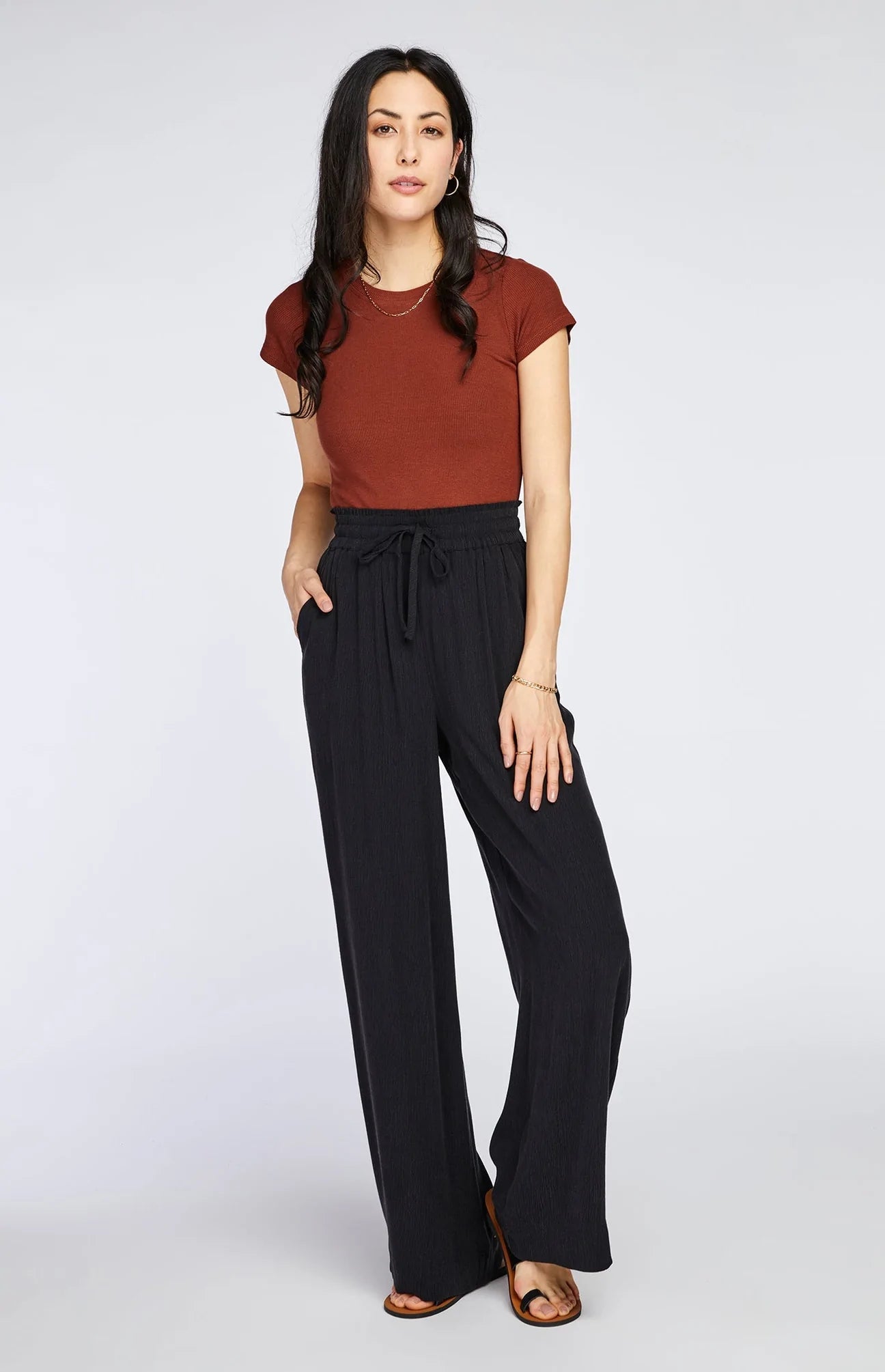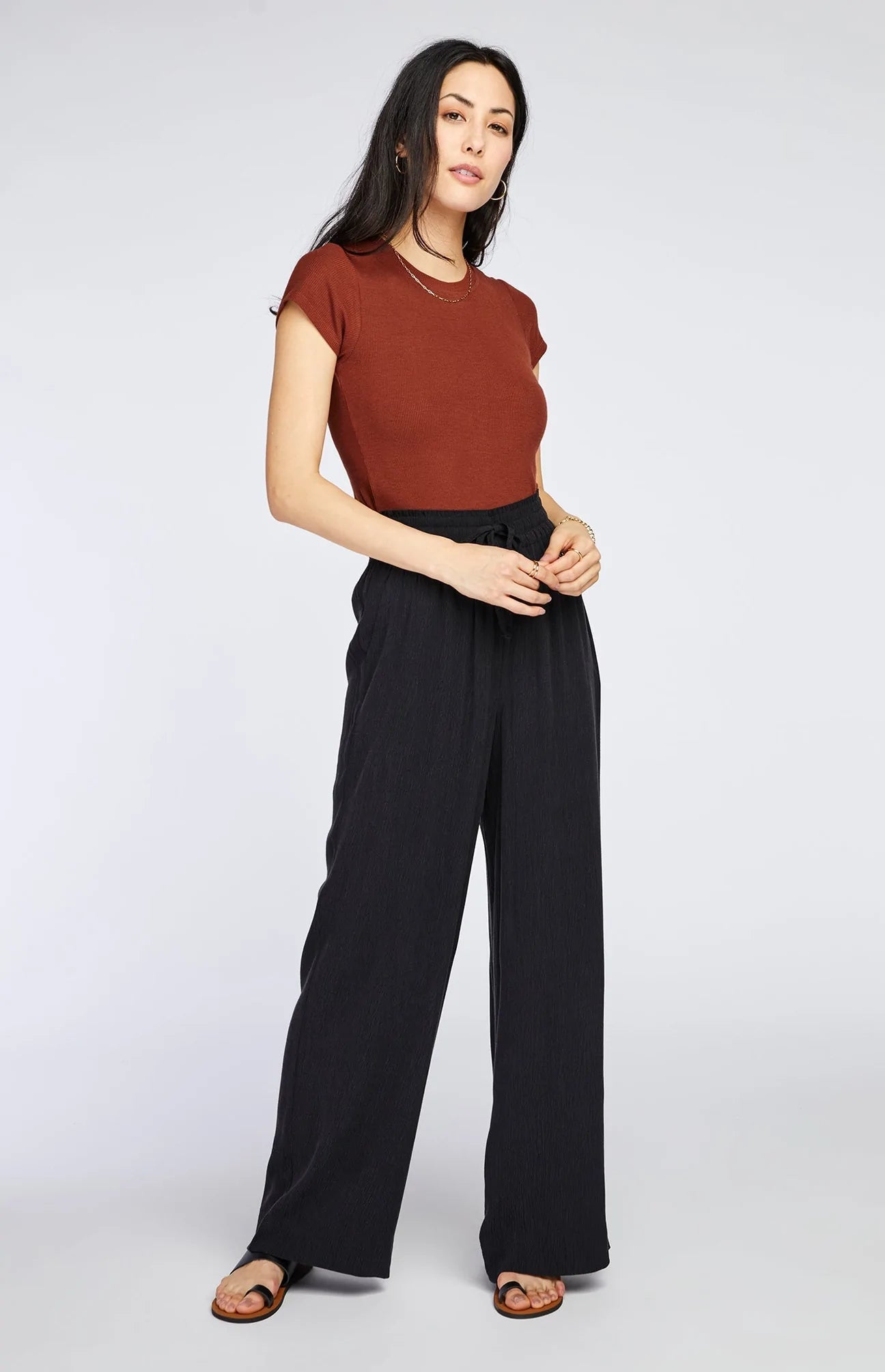 The Clara is a fitted crewneck tee made of a stretchy ribbed fabric. It’s an essential layering piece that can easily be dressed up or down.