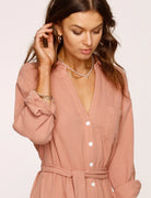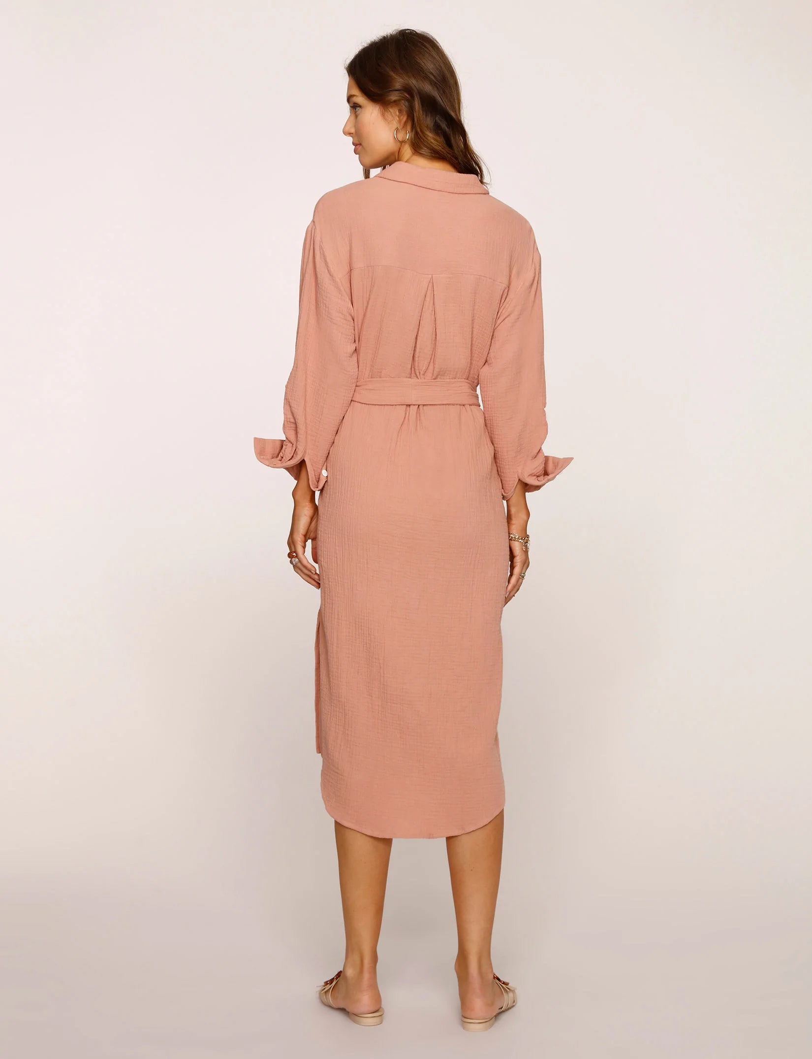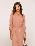 The Isadora Dress is polished with no effort. This button up shirt dress has ruched detailing at the sleeves and a fringe trim belt to cinch your waist. Pair with flats for an easy summer look or pair with heels for a put-together look.