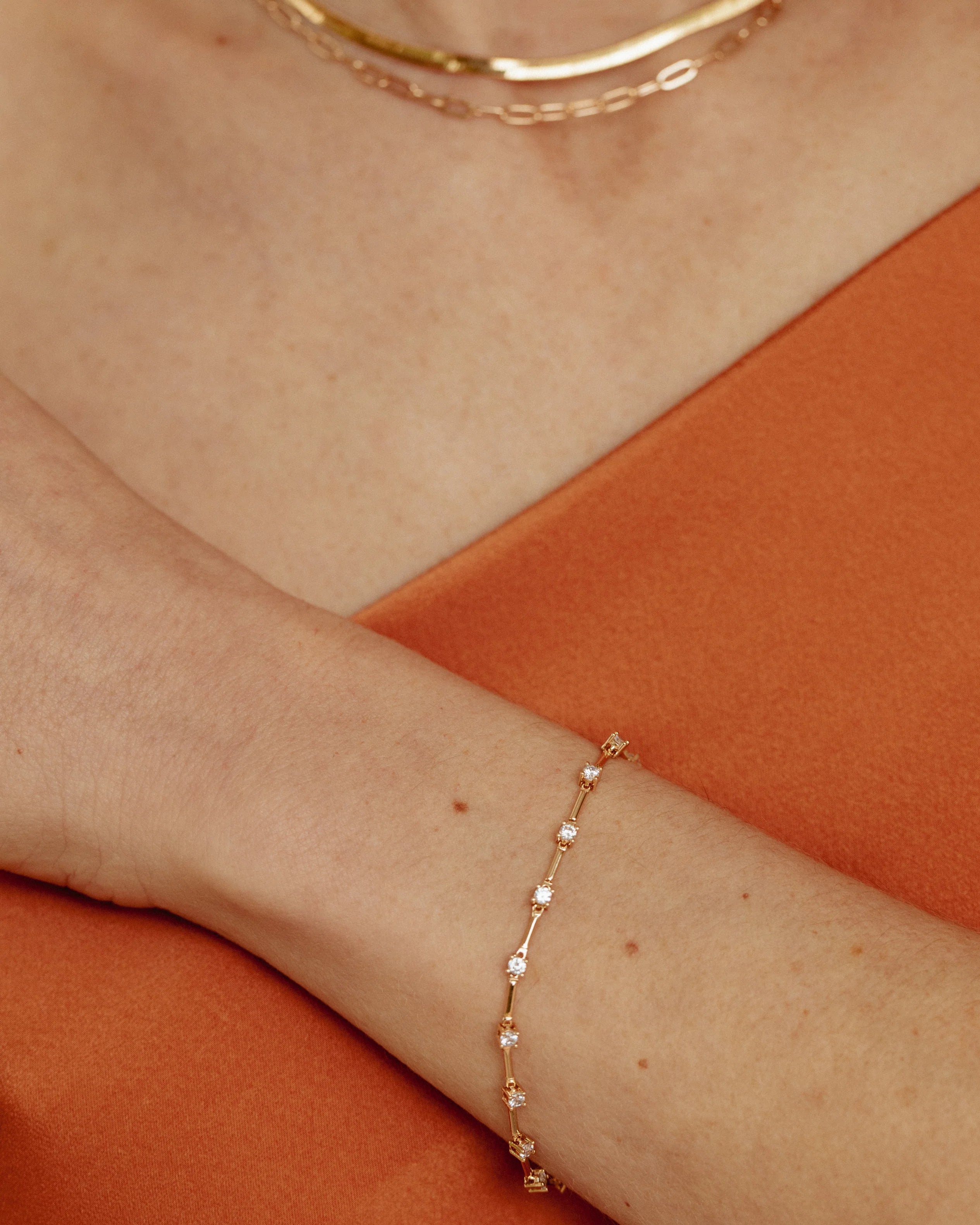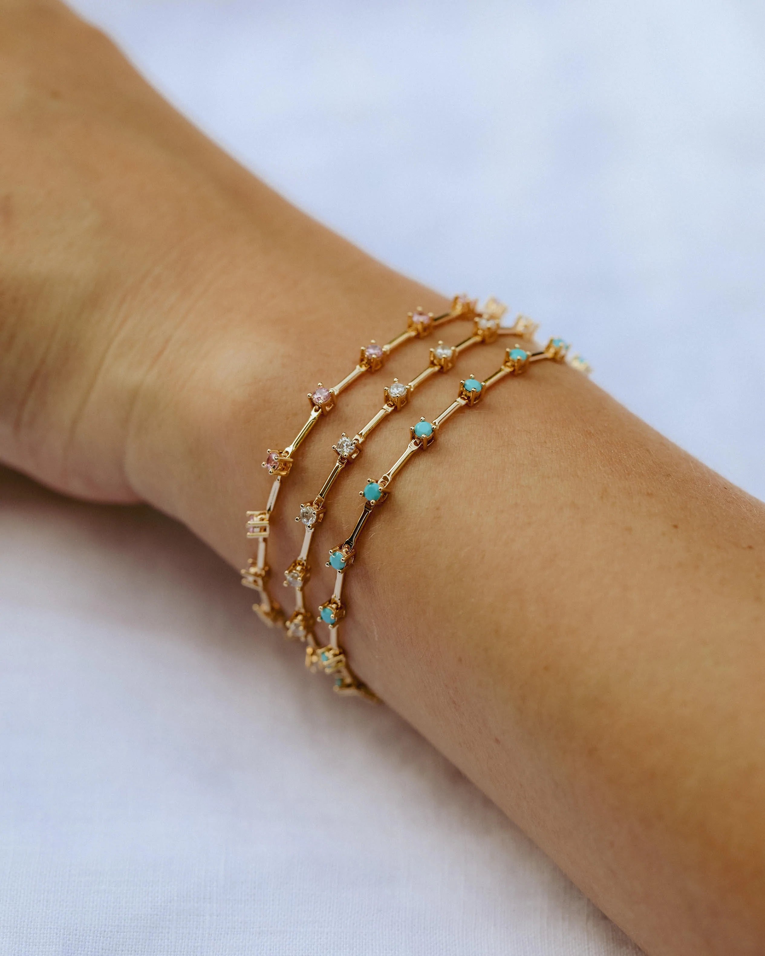 14k gold overlay made with a protective coating so it will never turn. Made with pink CZ
