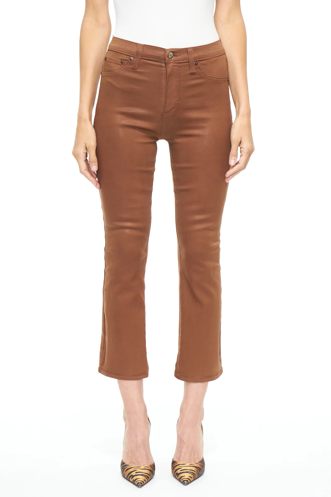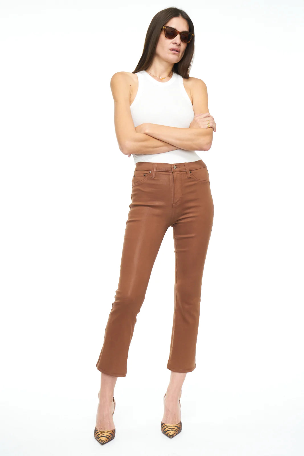 The Lennon is our signature high-rise cropped boot cut. It hugs you from waist to knee and flares out at the ankle — the perfect complement to a statement shoe.