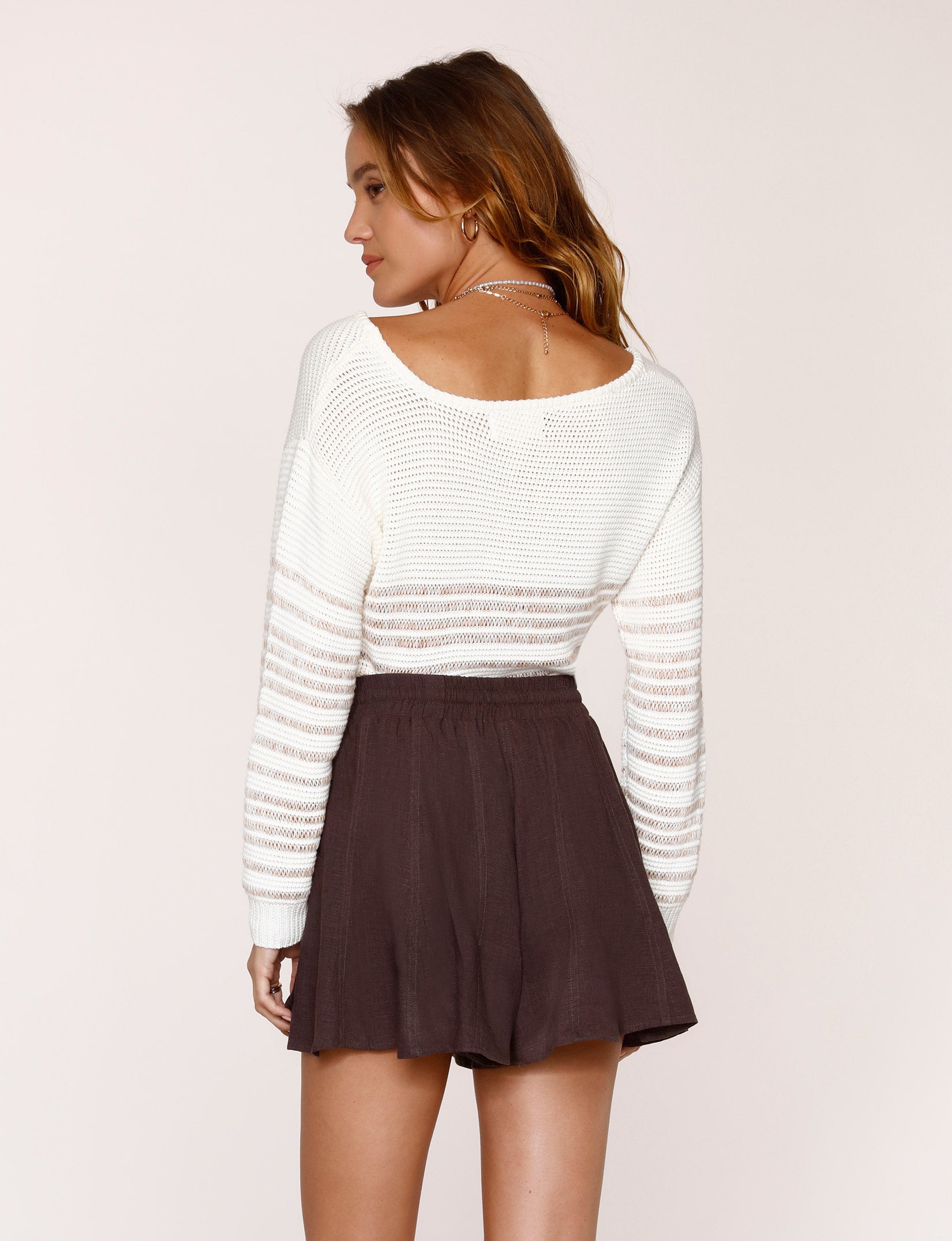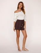 The Delaney Skort is a must-have for easy days. Easy and breezy, these relaxed shorts have an elastic waistband and drawstring tie to keep them in place. Pair with a tucked in tee and sneakers for a perfect daytime look.
