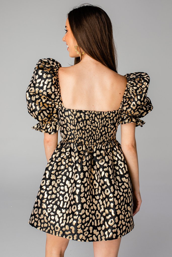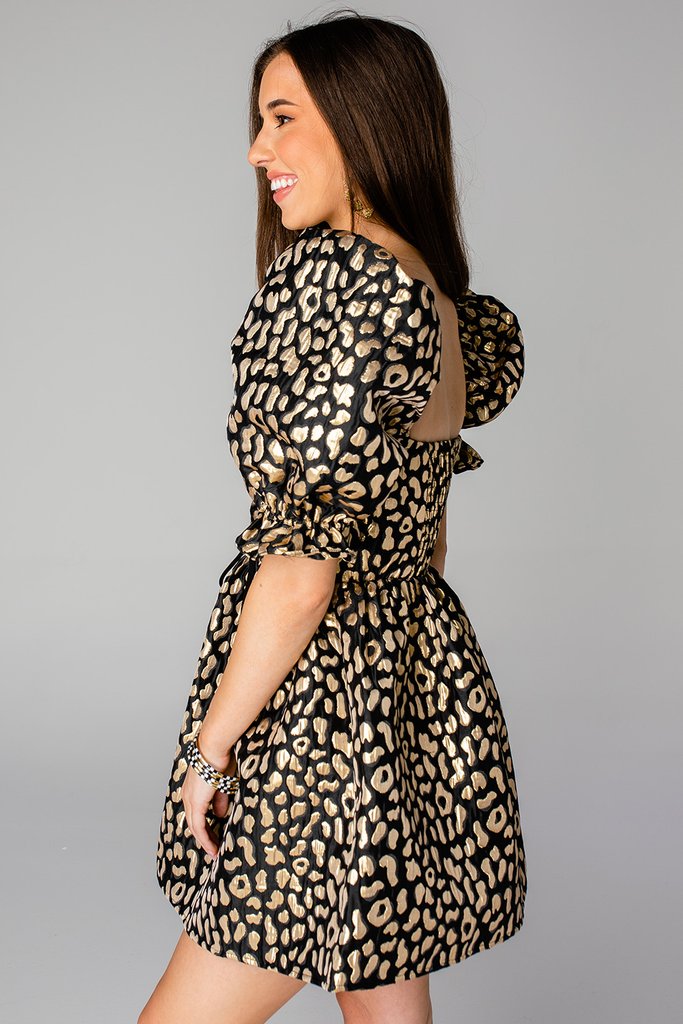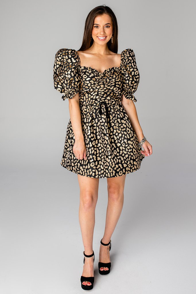 A #babecrew favorite is back for this holiday season! The Colby Dress features a drawstring in the front to adjust to your comfort, a slight puff sleeve, and a smocked back to stretch around you. She looks great paired with a big earring and your favorite heels!