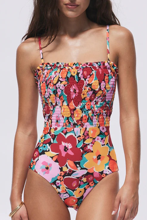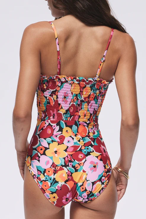Look your best at the beach with the Carrie One-Piece Swimsuit. This stylish swimsuit features adjustable shoulder straps and a high side hip at the leg for a perfect fit. With an attached shelf bra and removable moldable cups for added support, this striking Hermoza-printed swimsuit is sure to make a statement. Plus, compressive supportive fabric keeps you comfortable and its fully-lined design provides peace of mind.