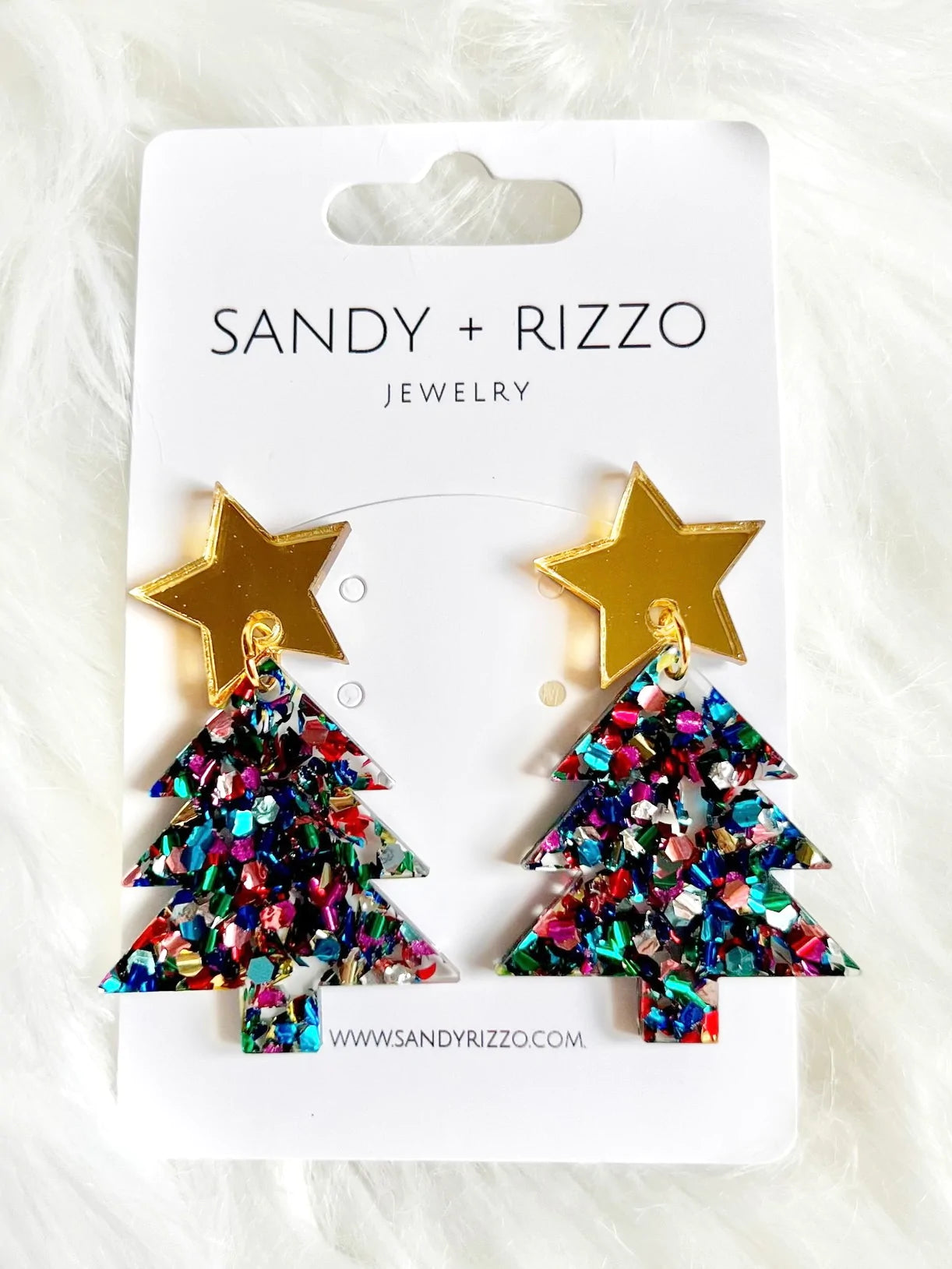 Sparkly Christmas tree statement earring. Perfect to wear all holiday season-long!