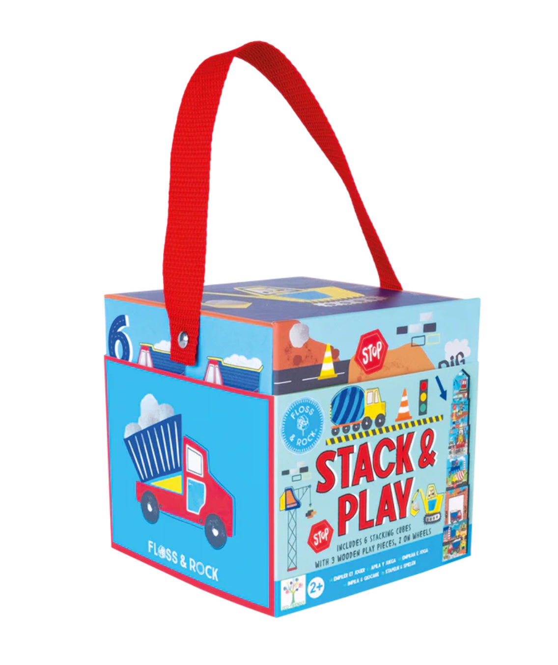 Get ready for endless amounts of fun with Stack & Play. Make a tower, then hide and play using the wooden pieces. Count the numbers on one side, then match up the scenes on the other (either by stacking or laying them side by side). The cool Construction design features diggers, trucks, cement mixers and more. Stack & Play includes 6 stacking cubes, 3 wooden play pieces, 2 on wheels. All parts are stored in the biggest box with a handy carry handle, making it so easy to take around with you!