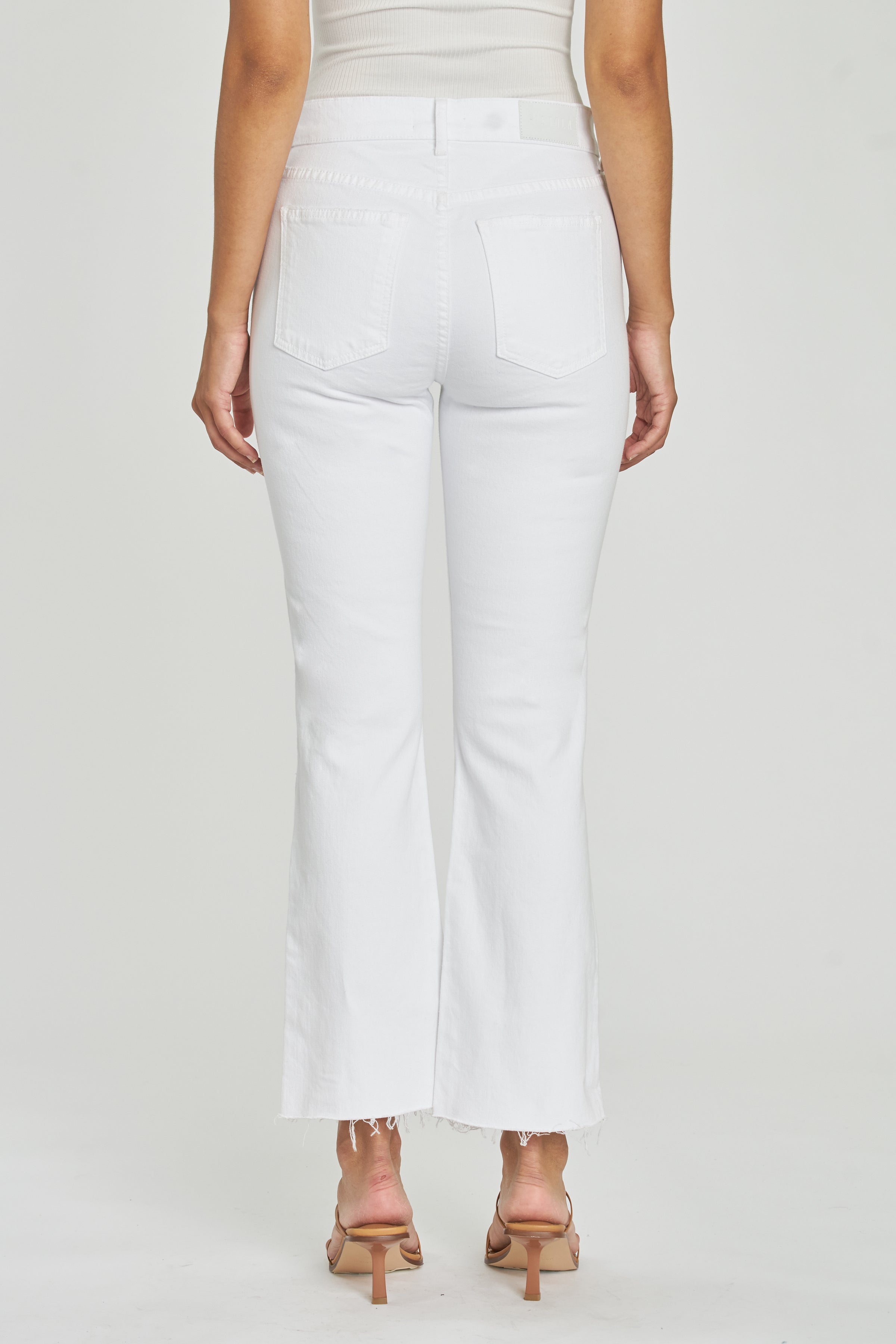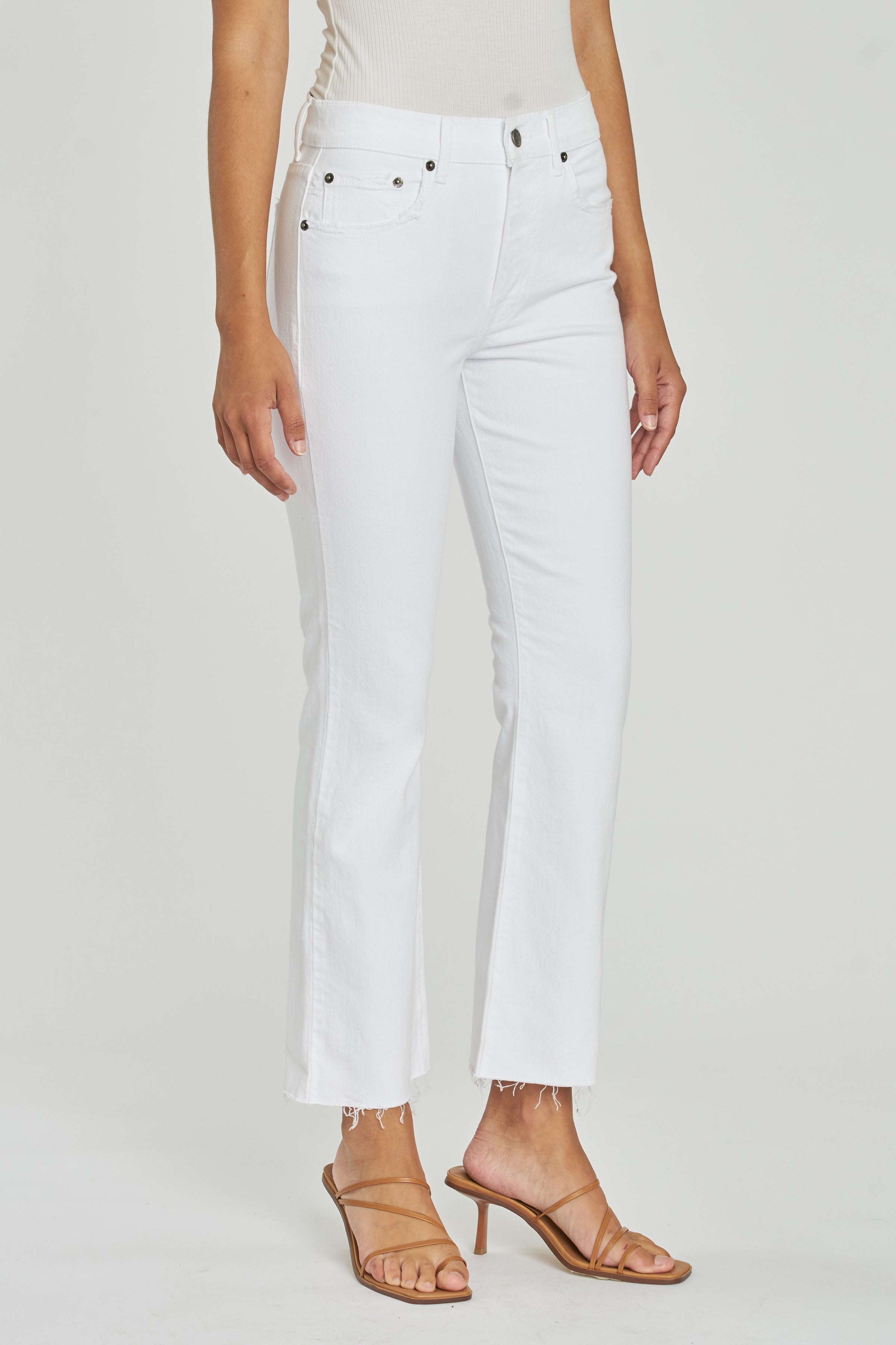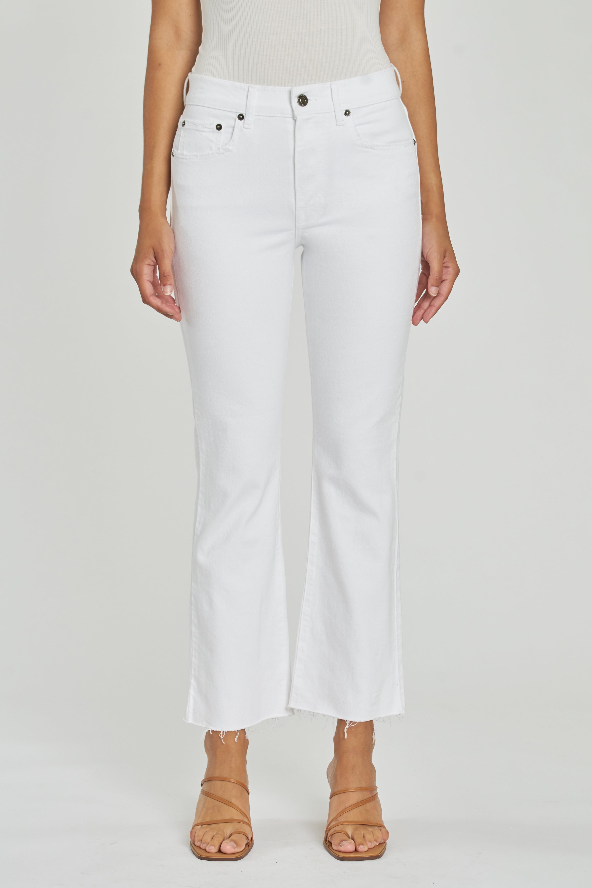 The Lennon is our signature high-rise cropped boot cut. It hugs you from waist to knee and flares out at the ankle — the perfect complement to a statement shoe.