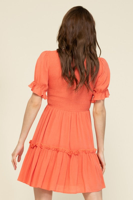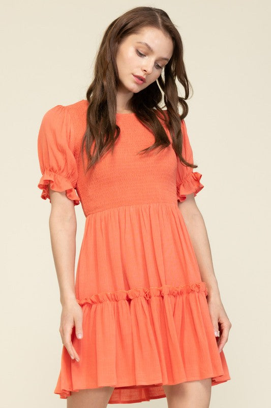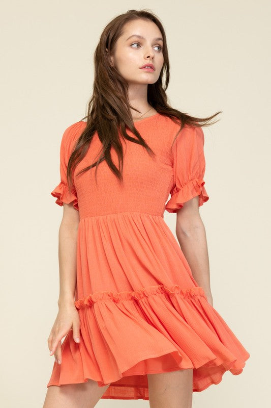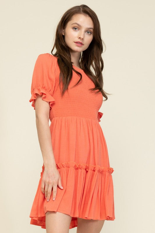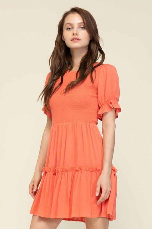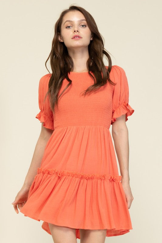 Coral S/S Smocked Mini Dress