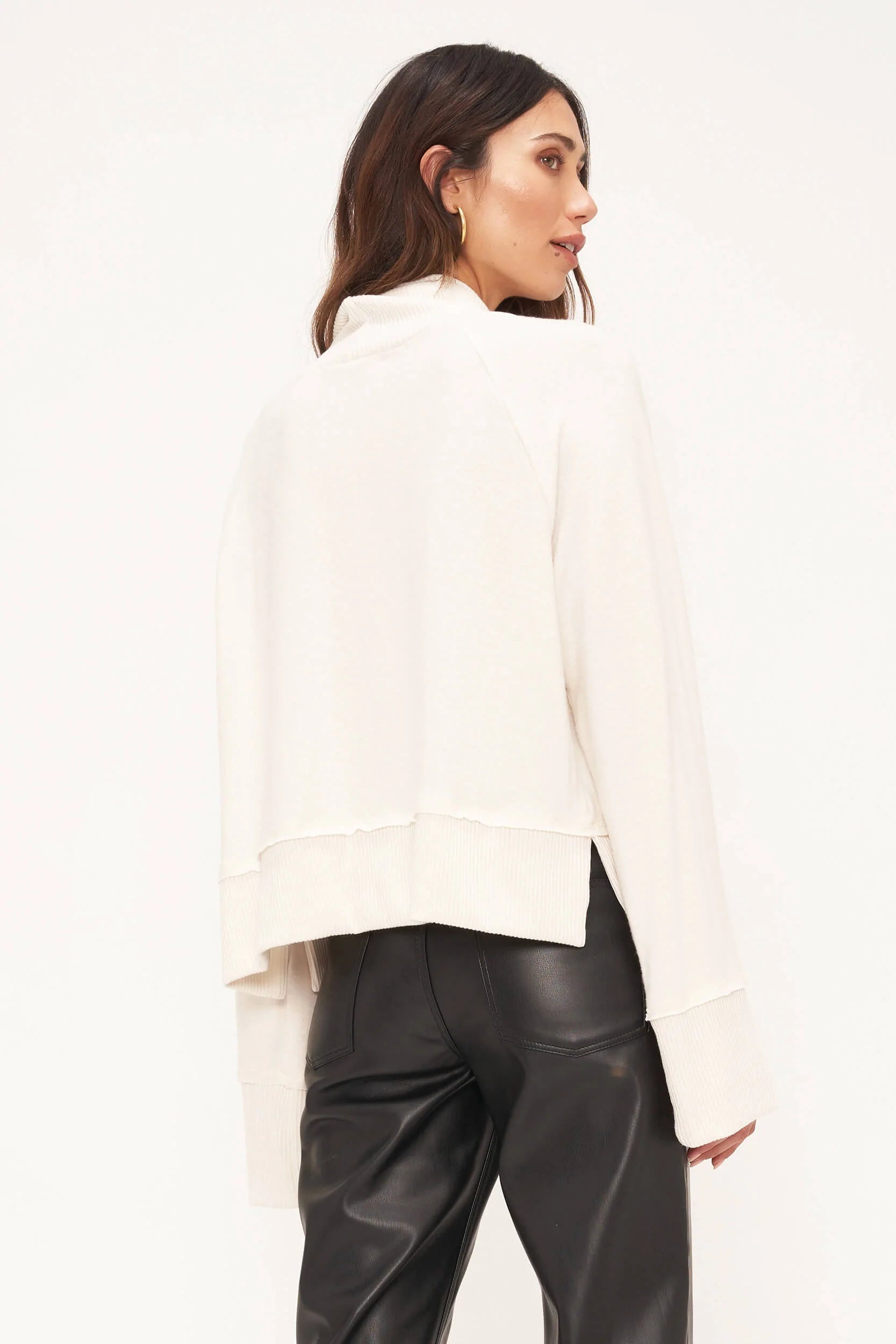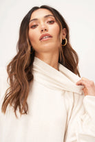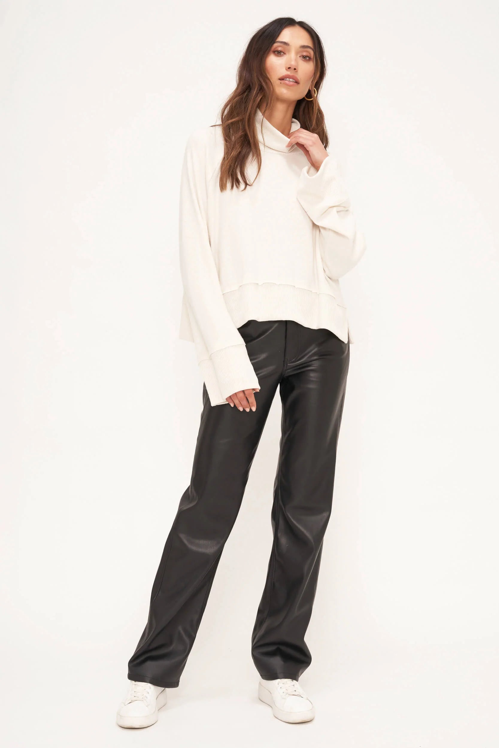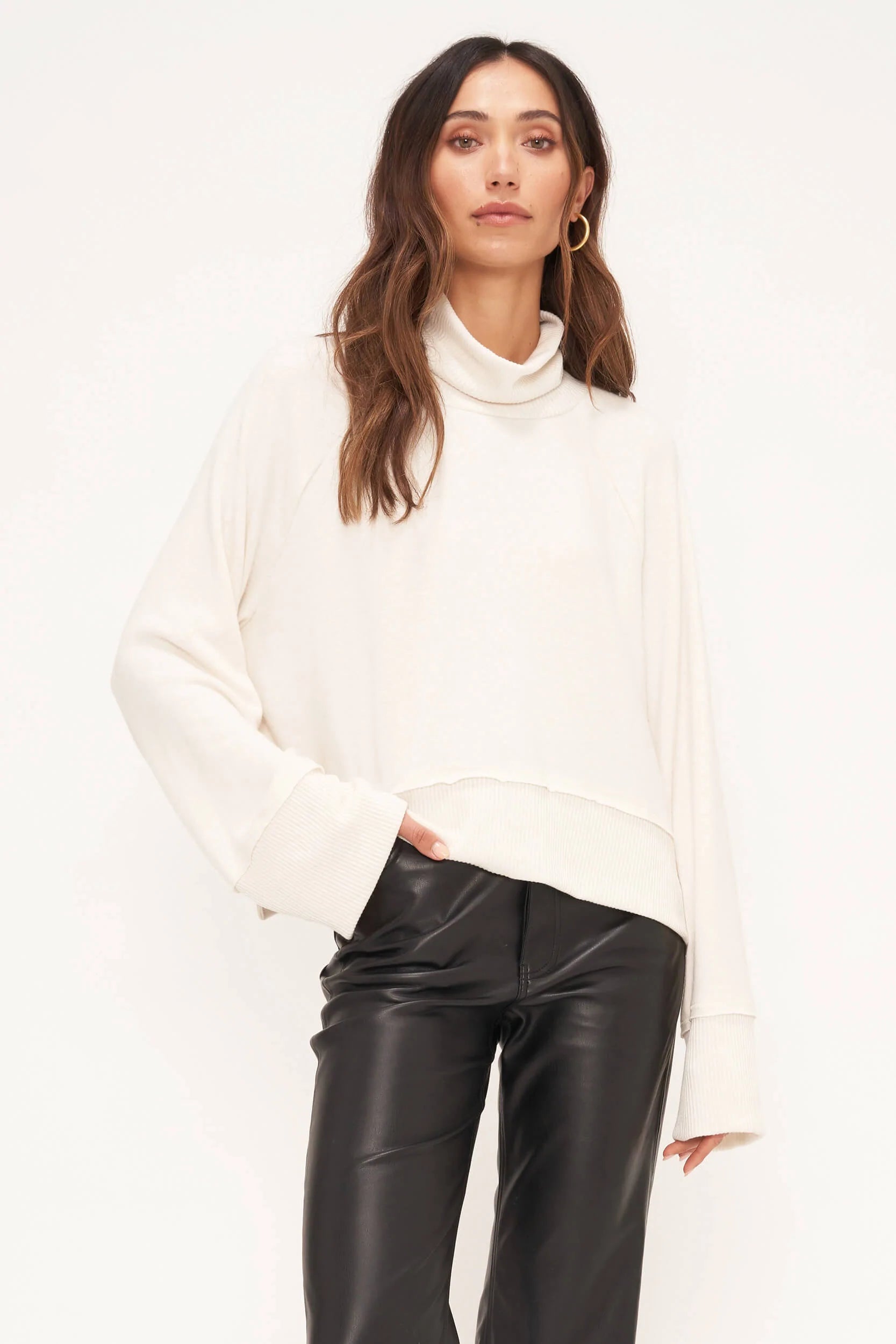 The Joya Cozy Turtleneck sits at a slight crop with oversized, wide sleeves and a relaxed turtleneck fit. Our signature cozy fabric keeps you warm, while details like exposed seams, contrast fabric cuffs, hemline, and neckline, prove that this isn't your typical turtleneck. Cozy up at home or style with a fun pant and heels for your next party.