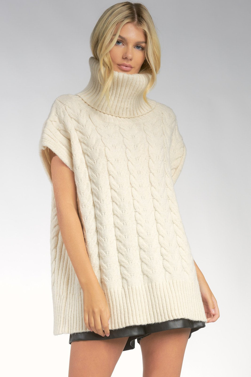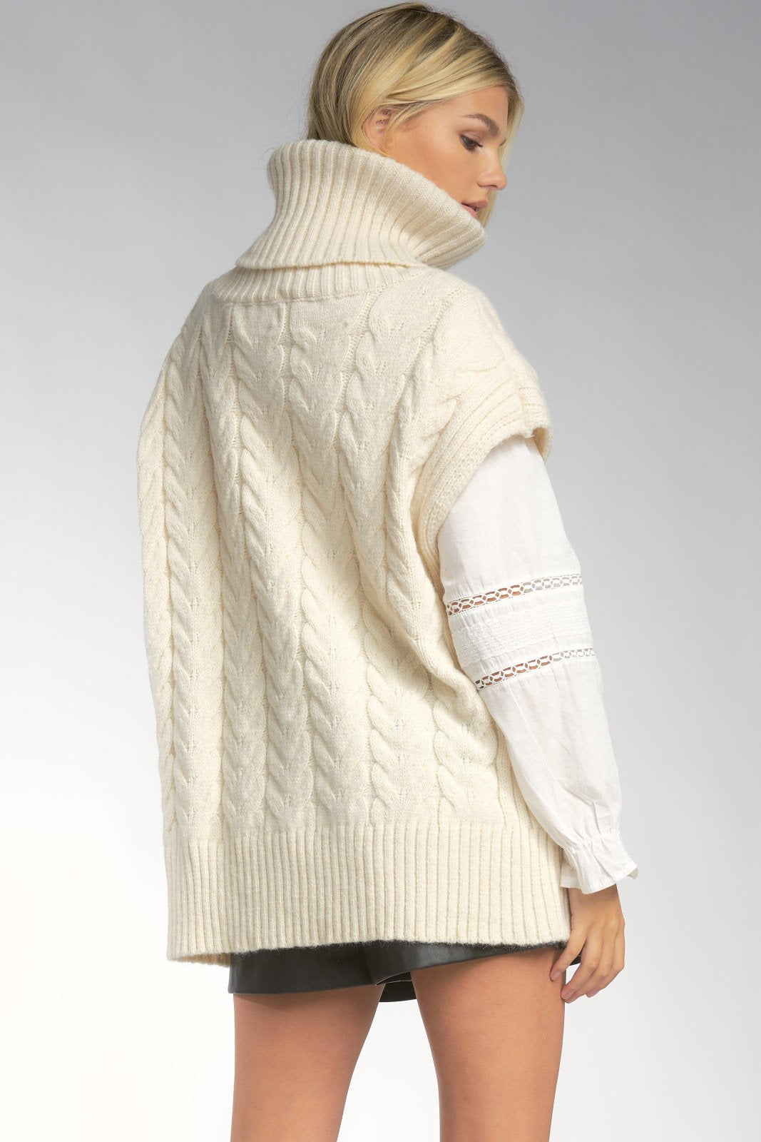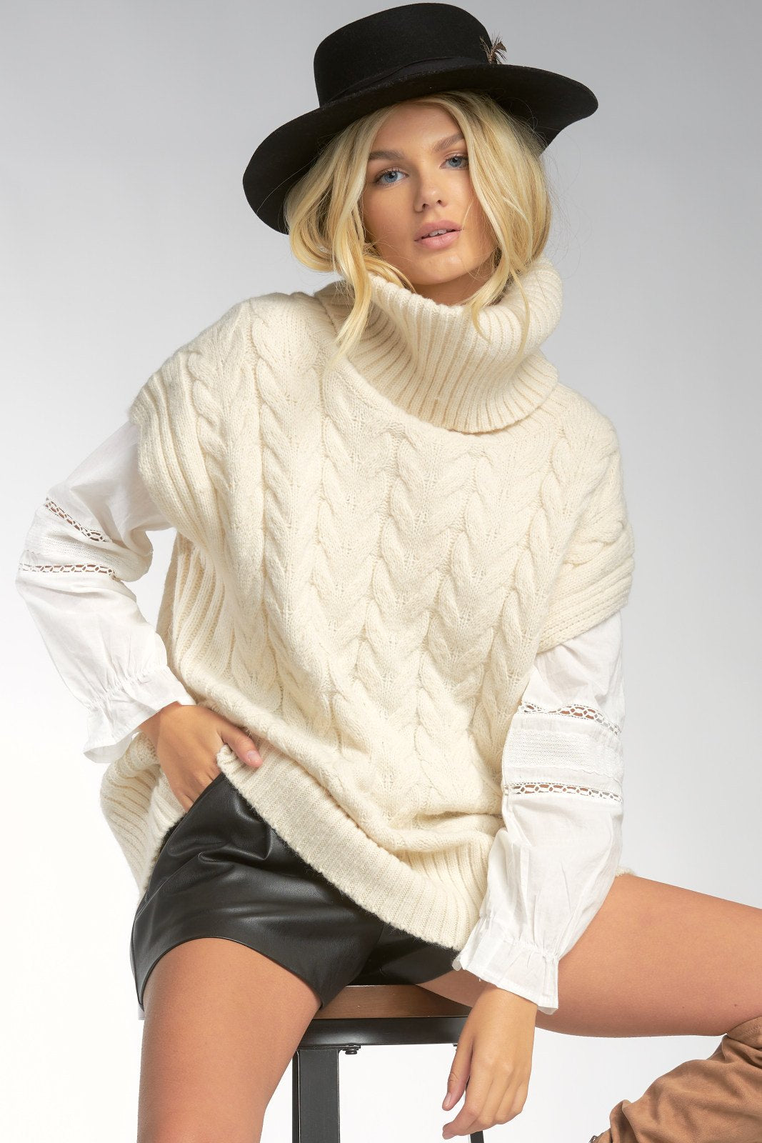 Blair sweater is a sleeveless knit with a chunky cowl neck. Combine chic and comfortable while adding a relaxed shape to any cold-weather look. Runs oversized, size down if preferred.