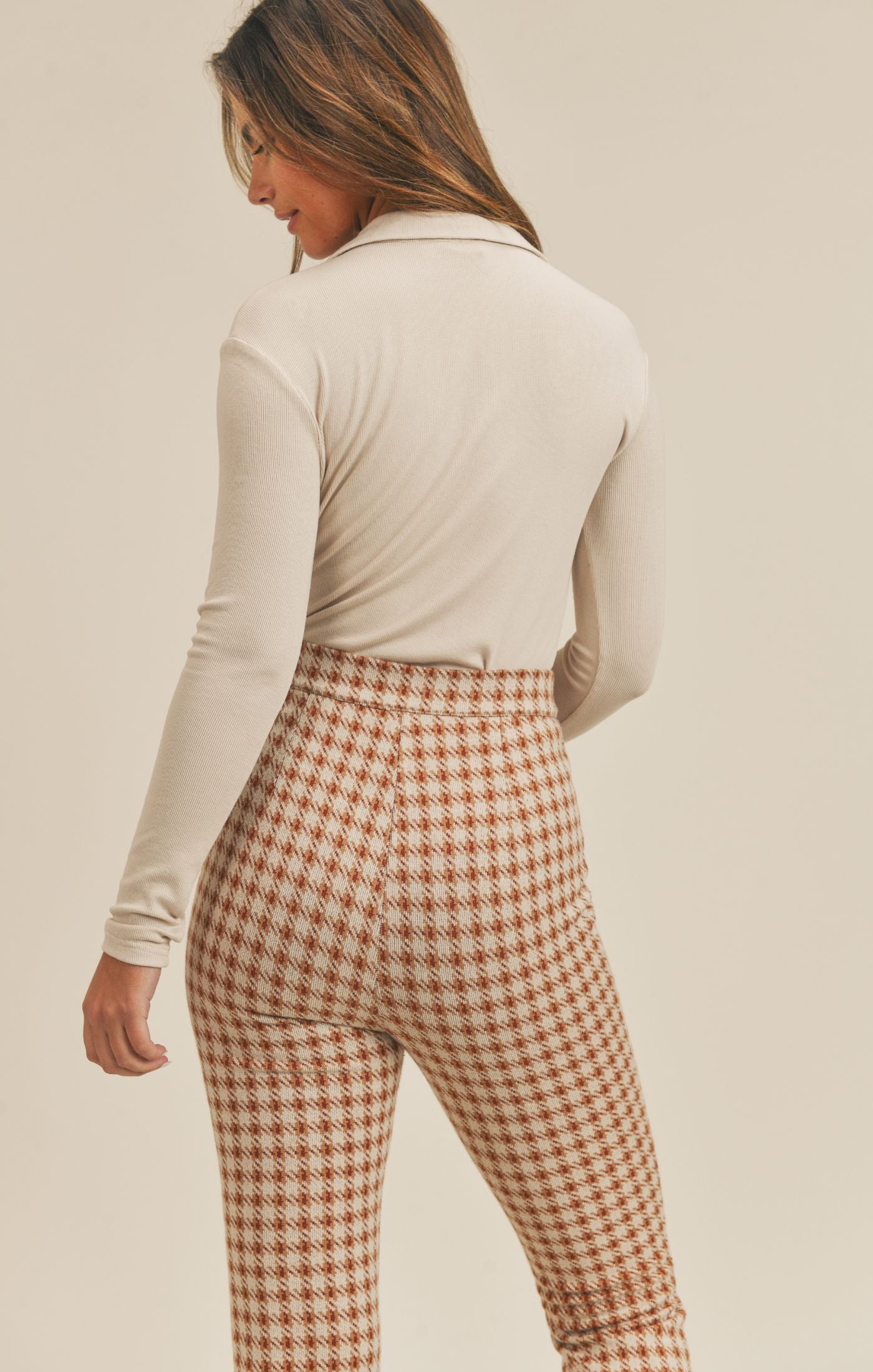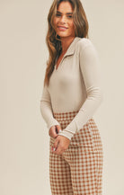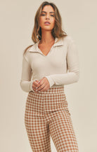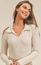 Cream Look Up Rib Knit L/S Top
