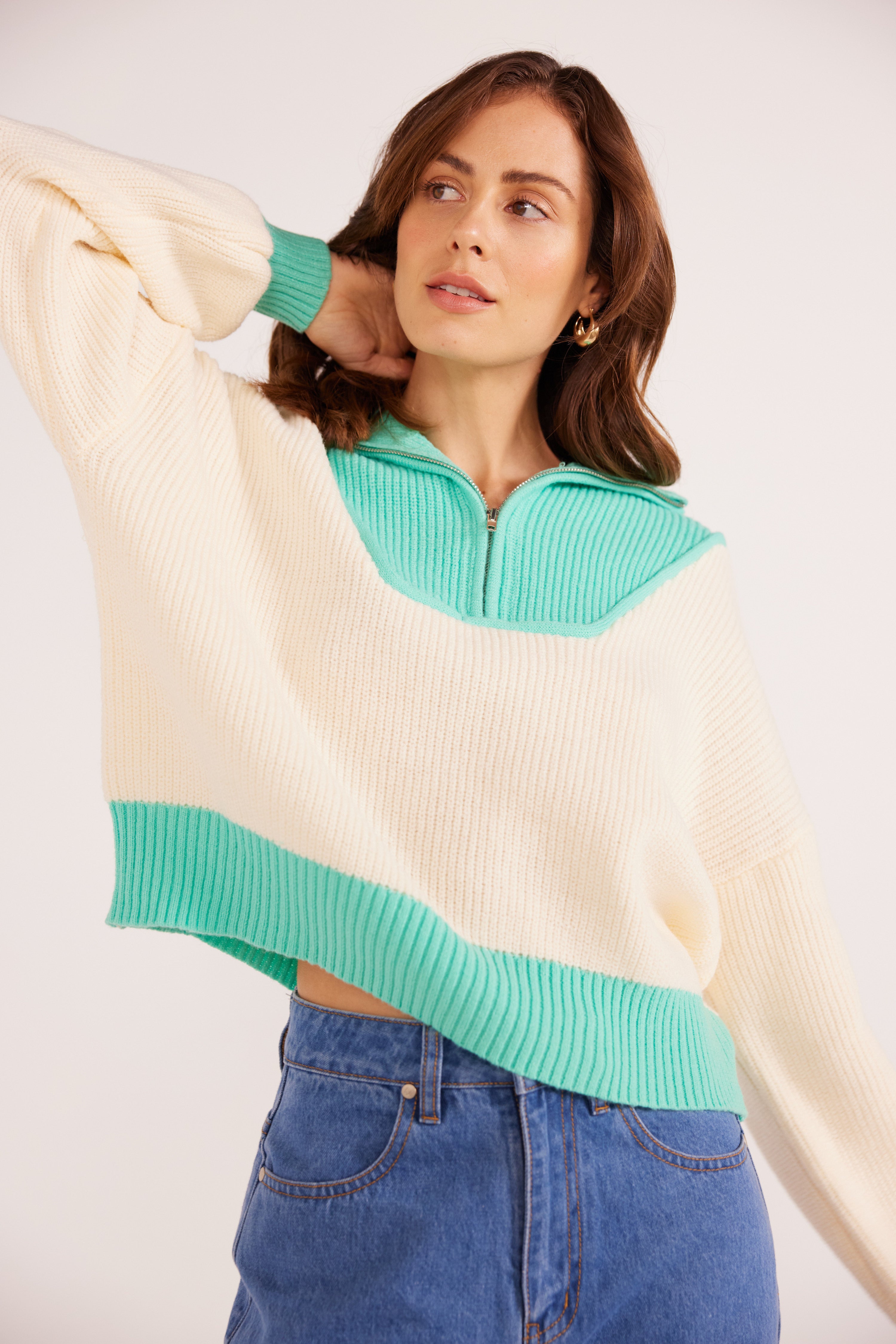 Cream/Teal Mia Pullover