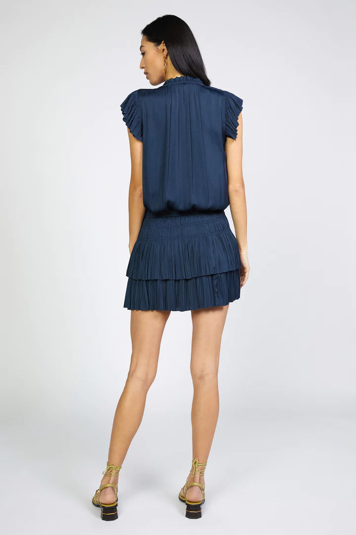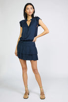 This short-sleeve mini dress ties up at the neckline and cinches in at the waist before falling to a thigh-skimming tiered hem with crisp, raw edges. The perfect one-and-done number for date night - not to mention one of Current Air's most popular dress.