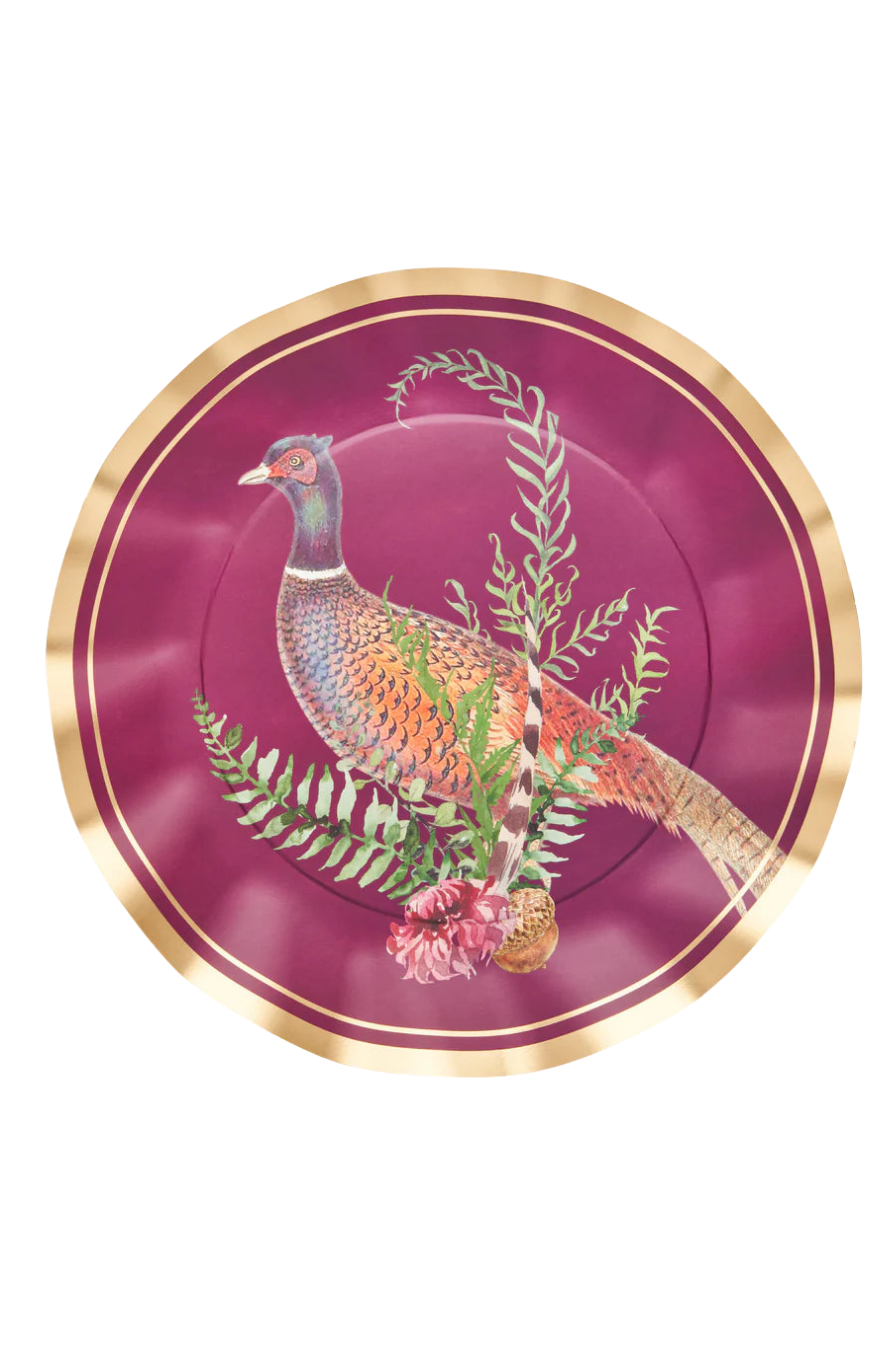 Celebrate autumn with our new Feather Grove Collection, featuring the rich colors of the fall season complemented by an elegant, deep plum shade. These ruffled edged, fall foliage designed dinner plates are adorned with gold foil accents and will make you want to host a party at the first chance you get! Create an Instagram-worthy tablescape that your guests will "fall" for this season with these show-stopping peacock dinner plates!