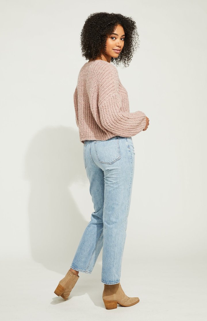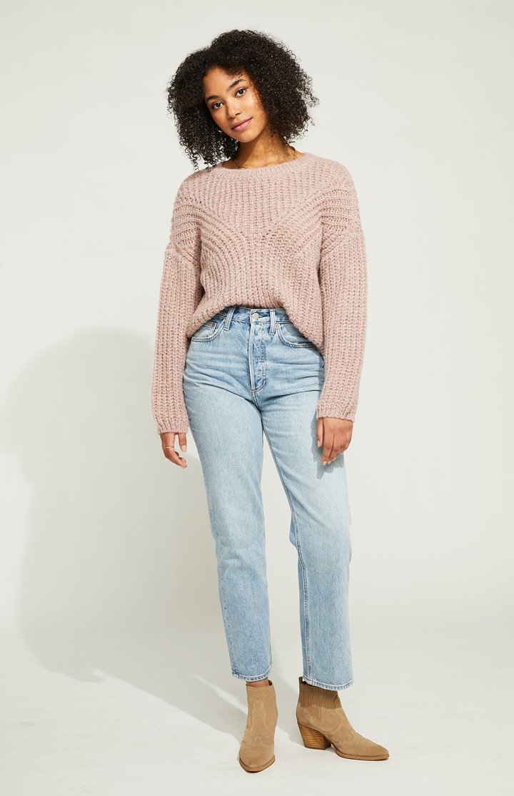 Made of a soft, lofty yarn, the Matilda has a slightly cropped length and features a stitch pattern detail. The relaxed silhouette pairs perfectly with high-waisted denim.