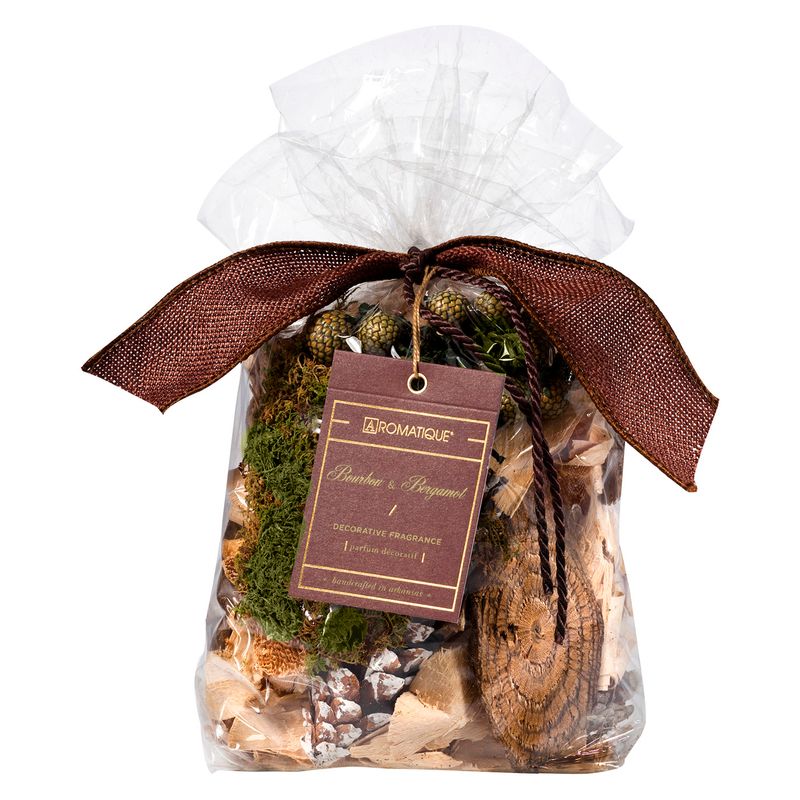 Bourbon & Bergamot Decorative Fragrance, also known as potpourri, warms your space with each bag filled with botanicals of moss, rattan berries, and cottonwood.