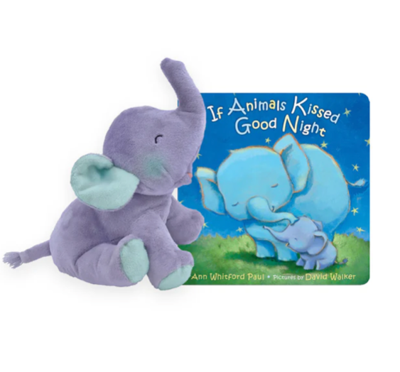 Cozy up for bedtime snuggles with this soft and adorable elephant. Perfectly-sized for small hands and big hearts, this elephant has a sweet smile, silky ears, and a raised trunk ready for a goodnight kiss. With whimsical art and playful rhyming verse, your little one will be eager to be tucked-in tight with this sleepy companion. Squeeze for a sweet kiss!