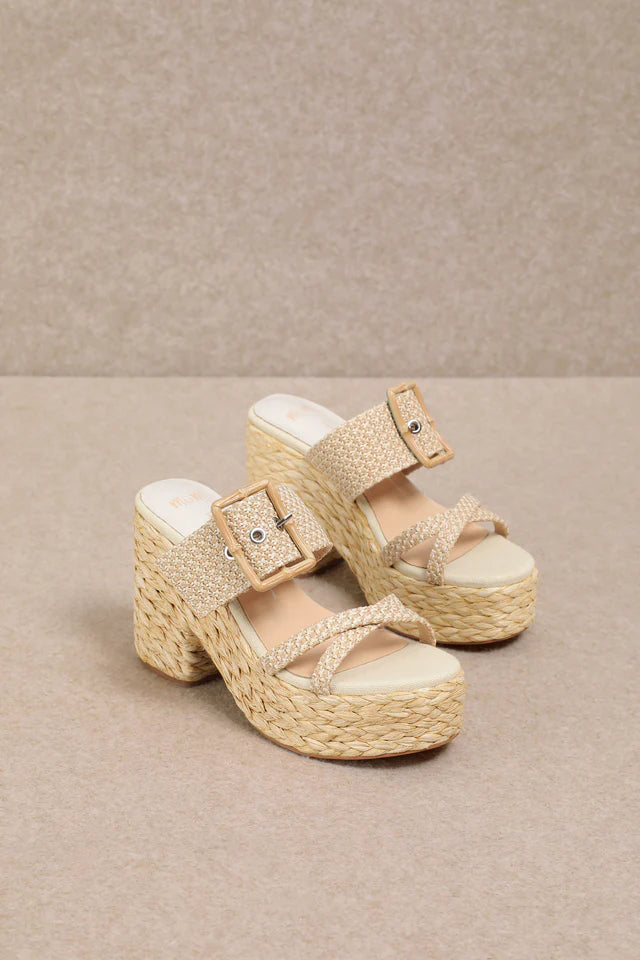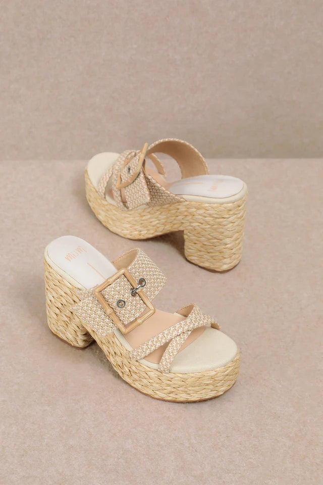 The EDWINA Raffia Chunky Heeled Sandals blend vibrant island style with eco-friendly design, offering a flattering lift and ultimate comfort.