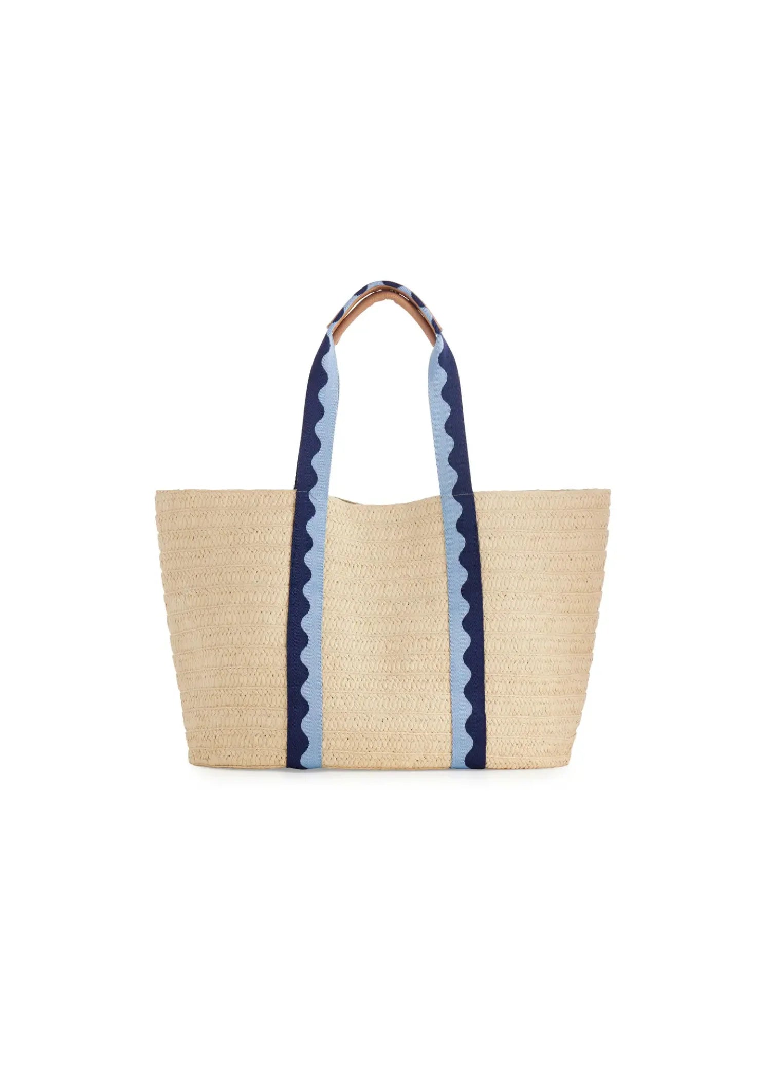 The Marbella Tote is the ultimate beach companion with its breezy, natural woven design and playful pop of color. Featuring study wave-patterned straps, this roomy tote carries all of your essentials with effortless style.