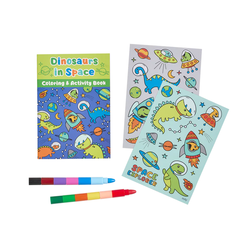 Where did the dinosaurs disappear to? Why outer space of course and this handy travel activity set is ready to go on a journey too. The Dinosaurs in Space coloring and activity kit will supply hours of fun for the kids while on the go.