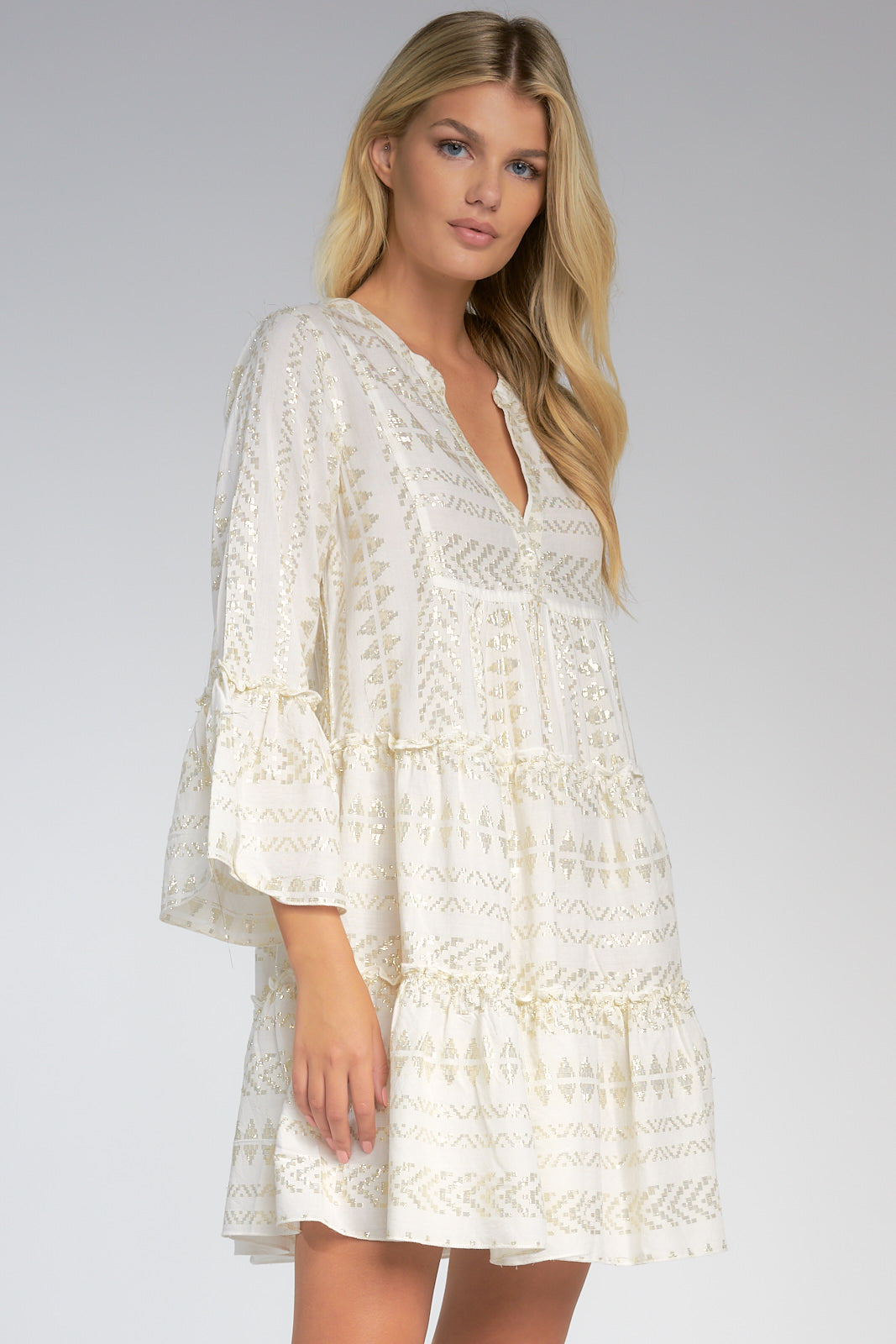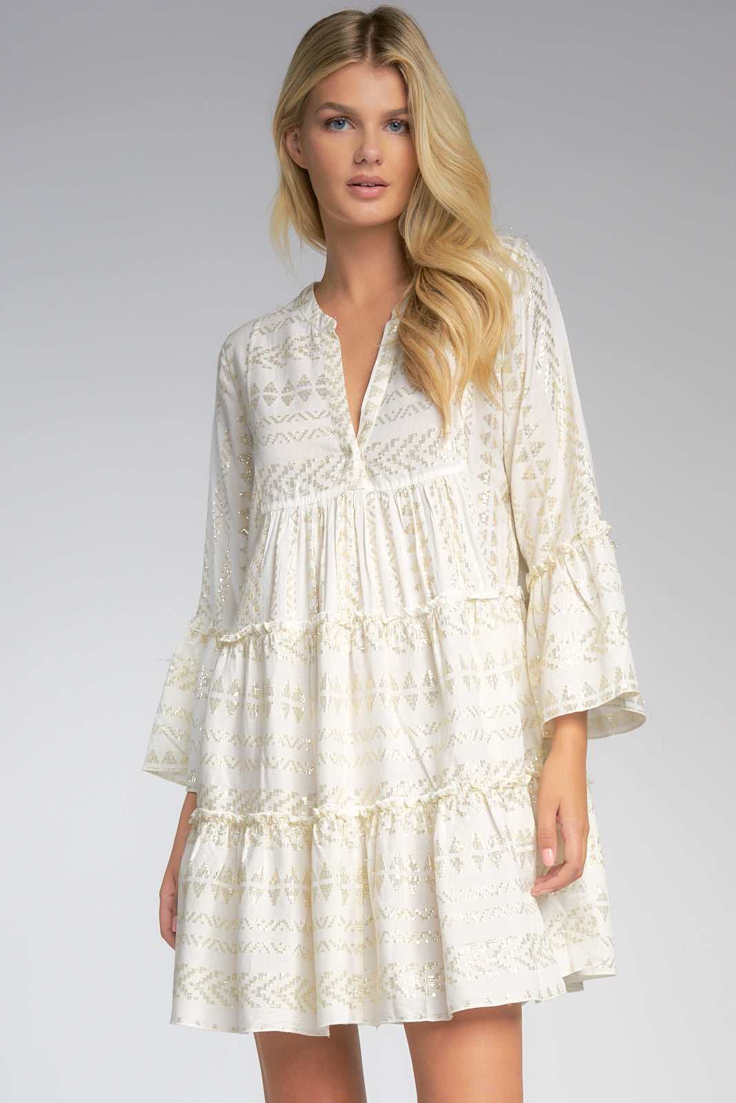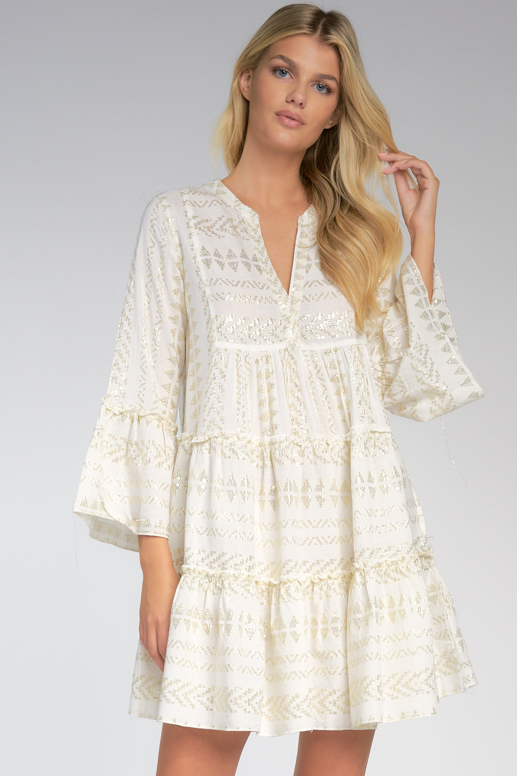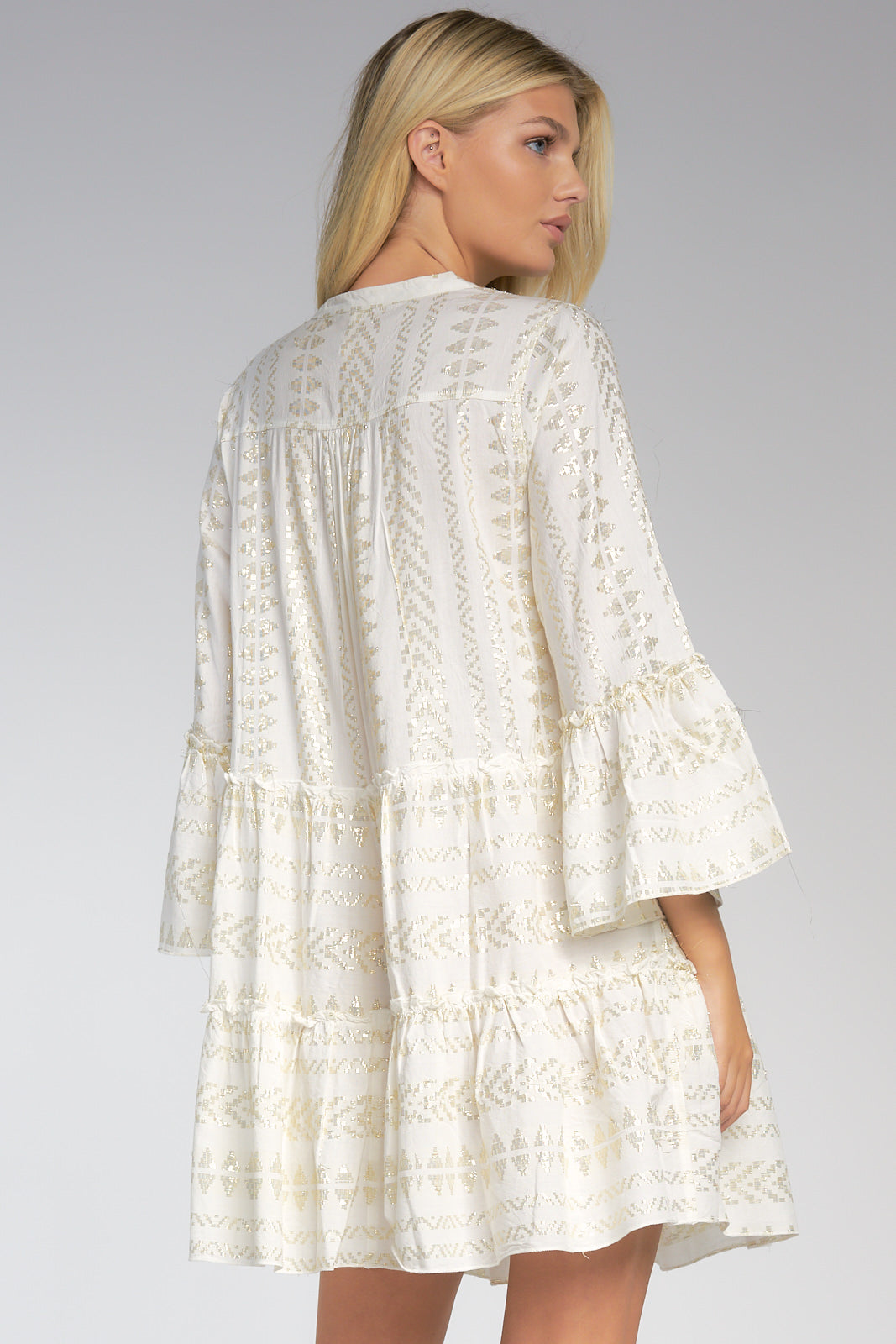 Natural Gold Arrow Print Embroidered Dress