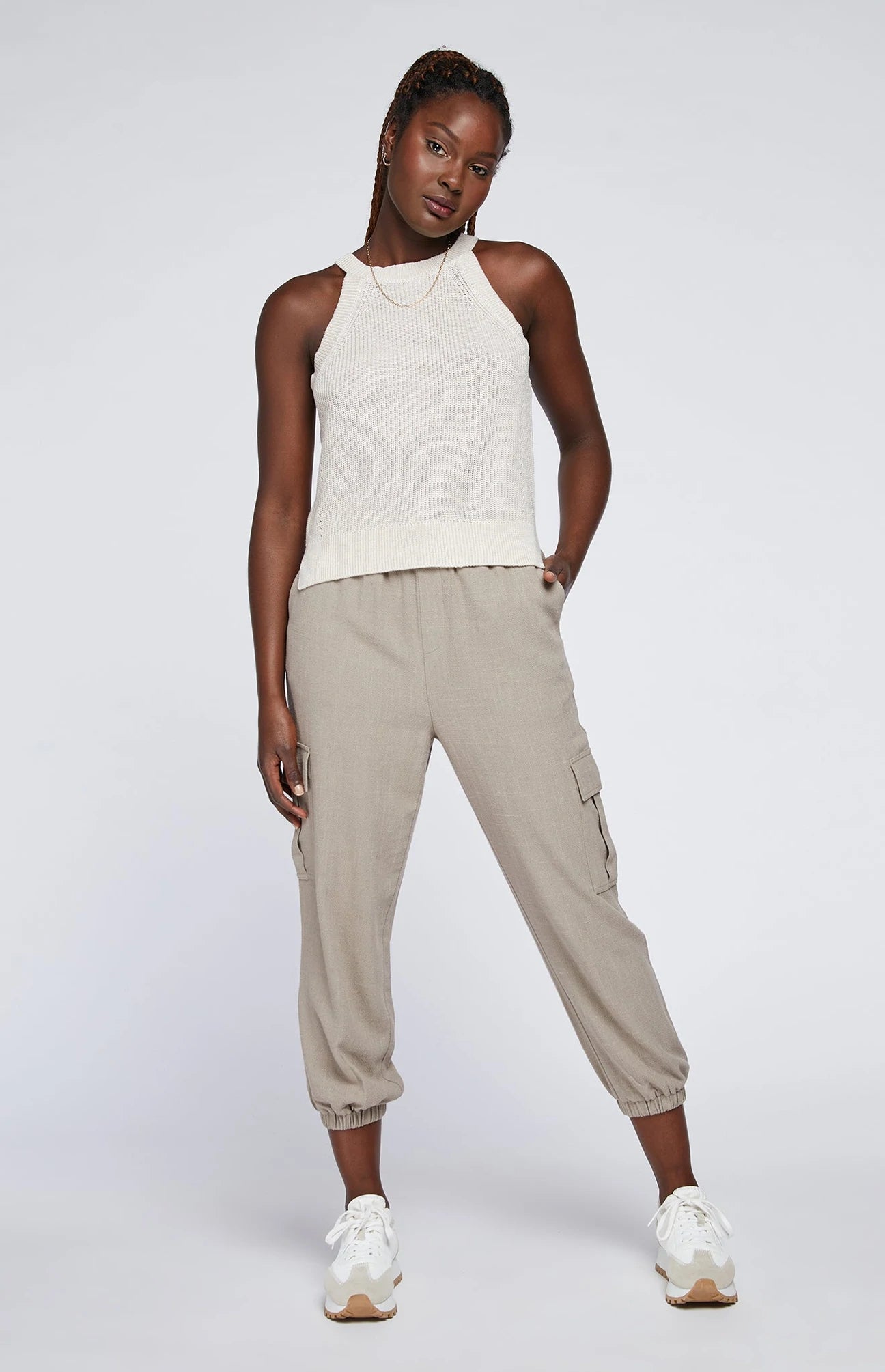 Made of a super soft yarn, the Vinci features a halter neckline, side slits, and pointelle stitch detailing. Pair it with your favorite denim for a casual, everyday look.