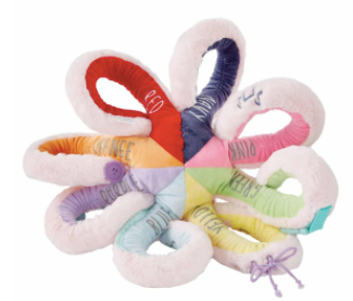 Help your child learn colors and numbers with the octivity pal plush toy. The faux fur octopus keeps baby busy with developmental activities:. Your child can interact with the toy and learn how to zip, snap, buckle, stick, and button. The toy also helps learn to sing the abc's, count to 8, identify colors and tie a bow.